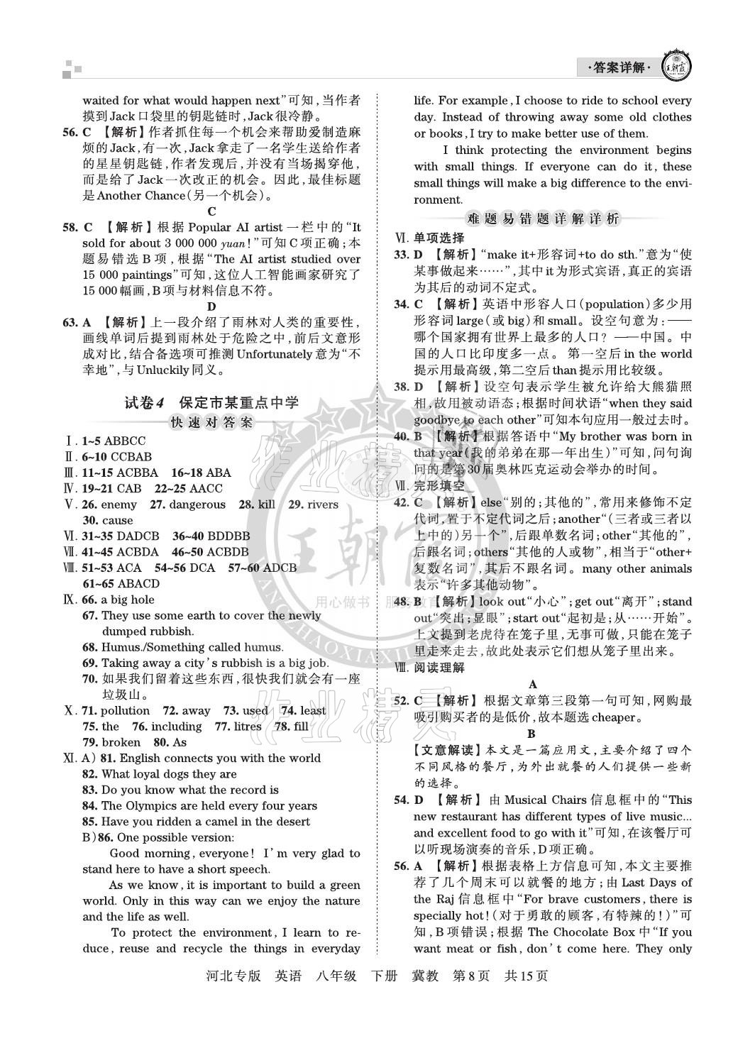 注:目前有些书本章节名称可能整理的还不是很完善,但都是按照顺序排列的,请同学们按照顺序仔细查找。练习册 2021年王朝霞各地期末试卷精选八年级英语下册冀教版河北专版 答案主要是用来给同学们做完题方便对答案用的,请勿直接抄袭。