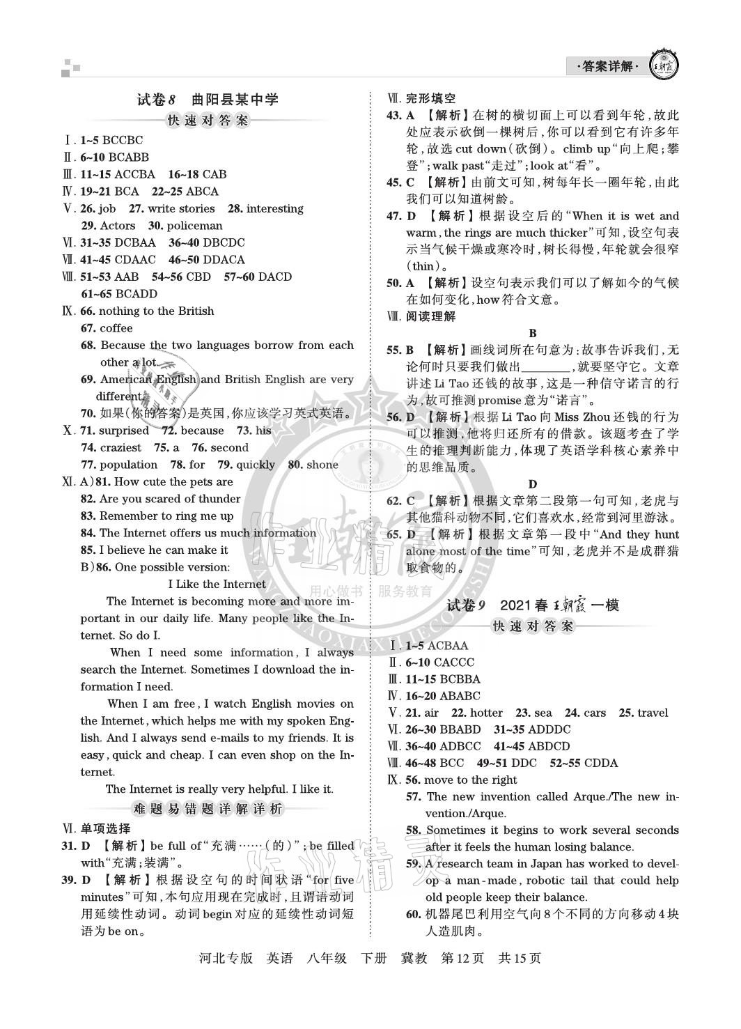 《2021年王朝霞各地期末试卷精选八年级英语下册冀教版河北专版》