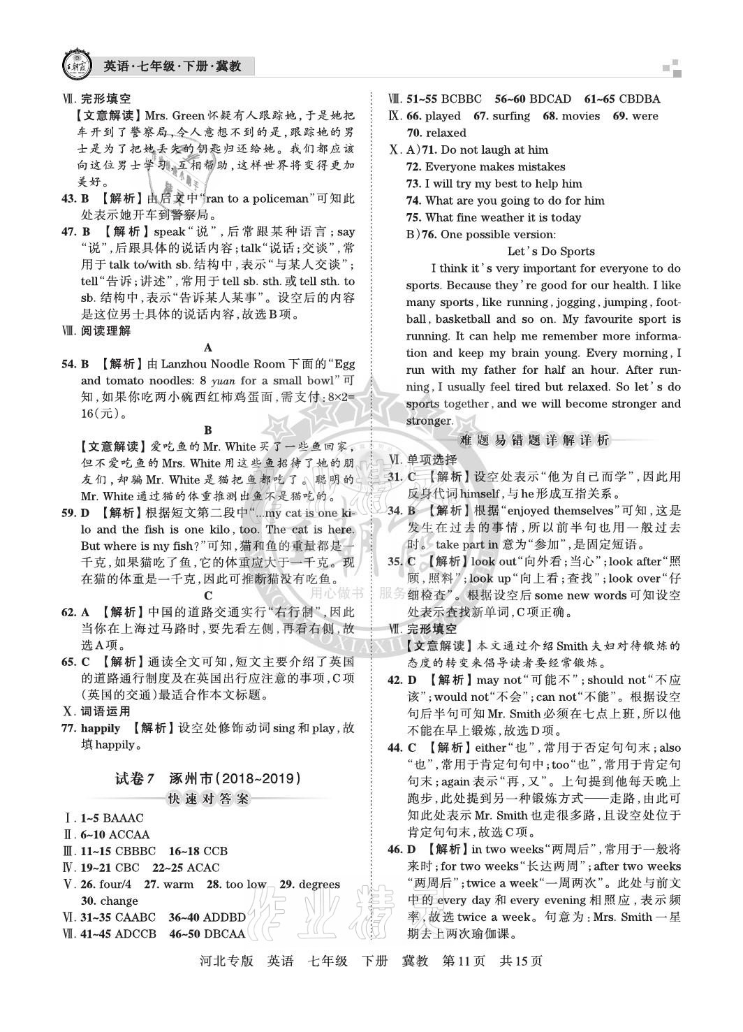 注:目前有些书本章节名称可能整理的还不是很完善,但都是按照顺序排列的,请同学们按照顺序仔细查找。练习册 2021年王朝霞各地期末试卷精选七年级英语下册冀教版河北专版 答案主要是用来给同学们做完题方便对答案用的,请勿直接抄袭。