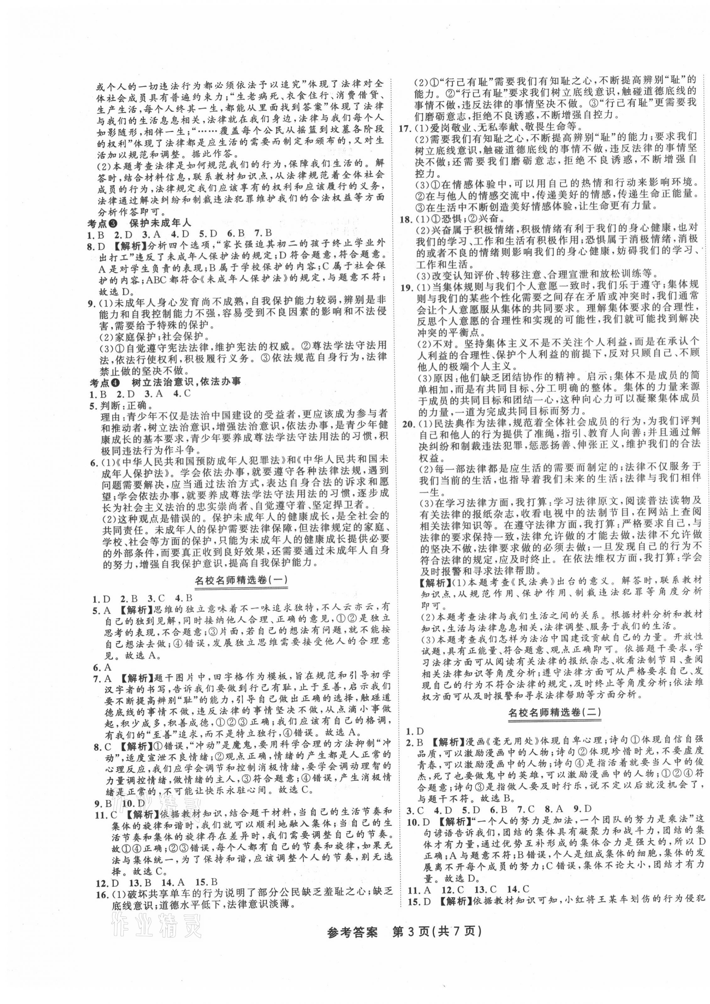 注:目前有些书本章节名称可能整理的还不是很完善,但都是按照顺序排列的,请同学们按照顺序仔细查找。练习册 2021年金状元直击期末七年级道德与法治下册人教版 答案主要是用来给同学们做完题方便对答案用的,请勿直接抄袭。