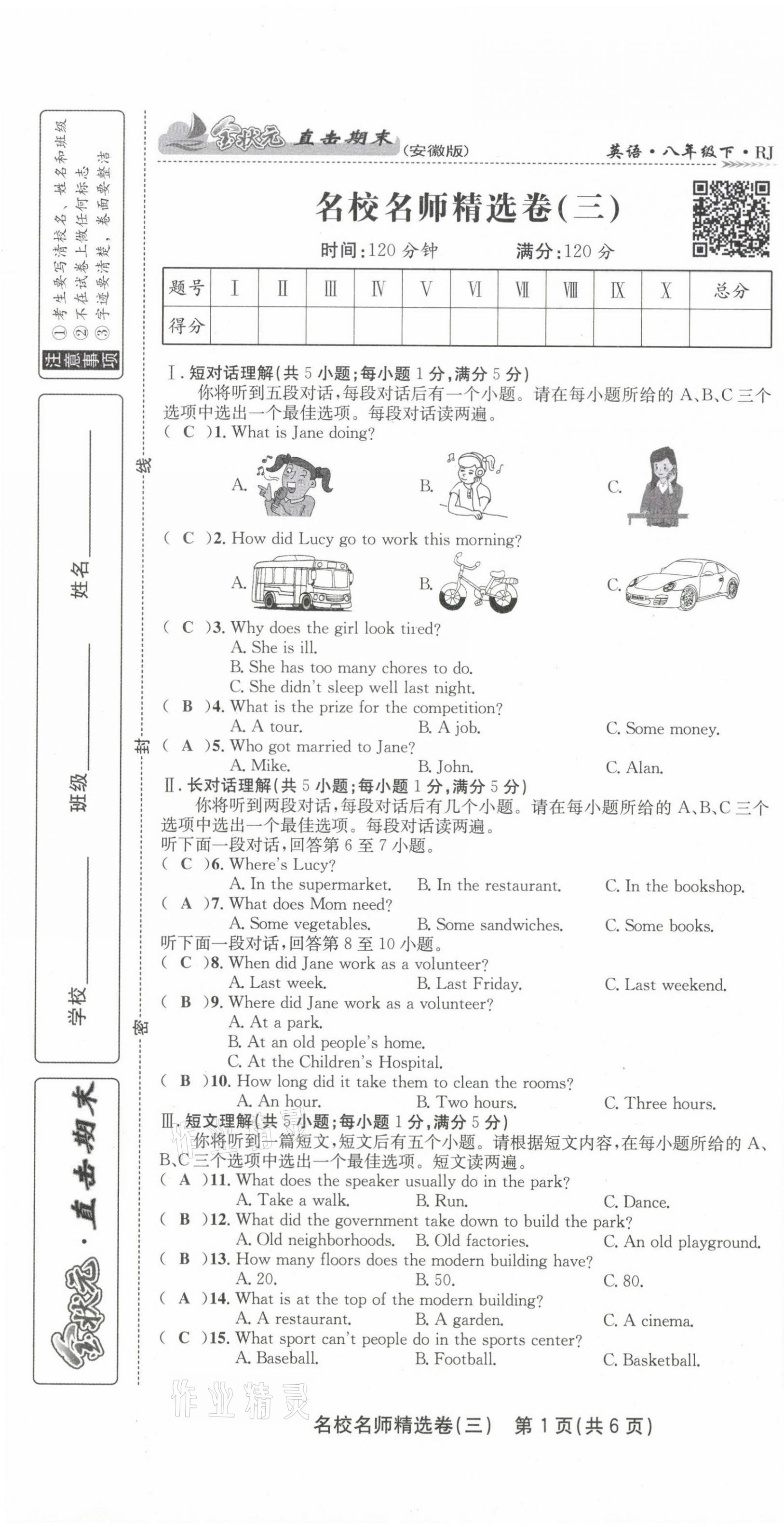注:目前有些书本章节名称可能整理的还不是很完善,但都是按照顺序排列的,请同学们按照顺序仔细查找。练习册 2021年金状元直击期末八年级英语下册人教版 答案主要是用来给同学们做完题方便对答案用的,请勿直接抄袭。