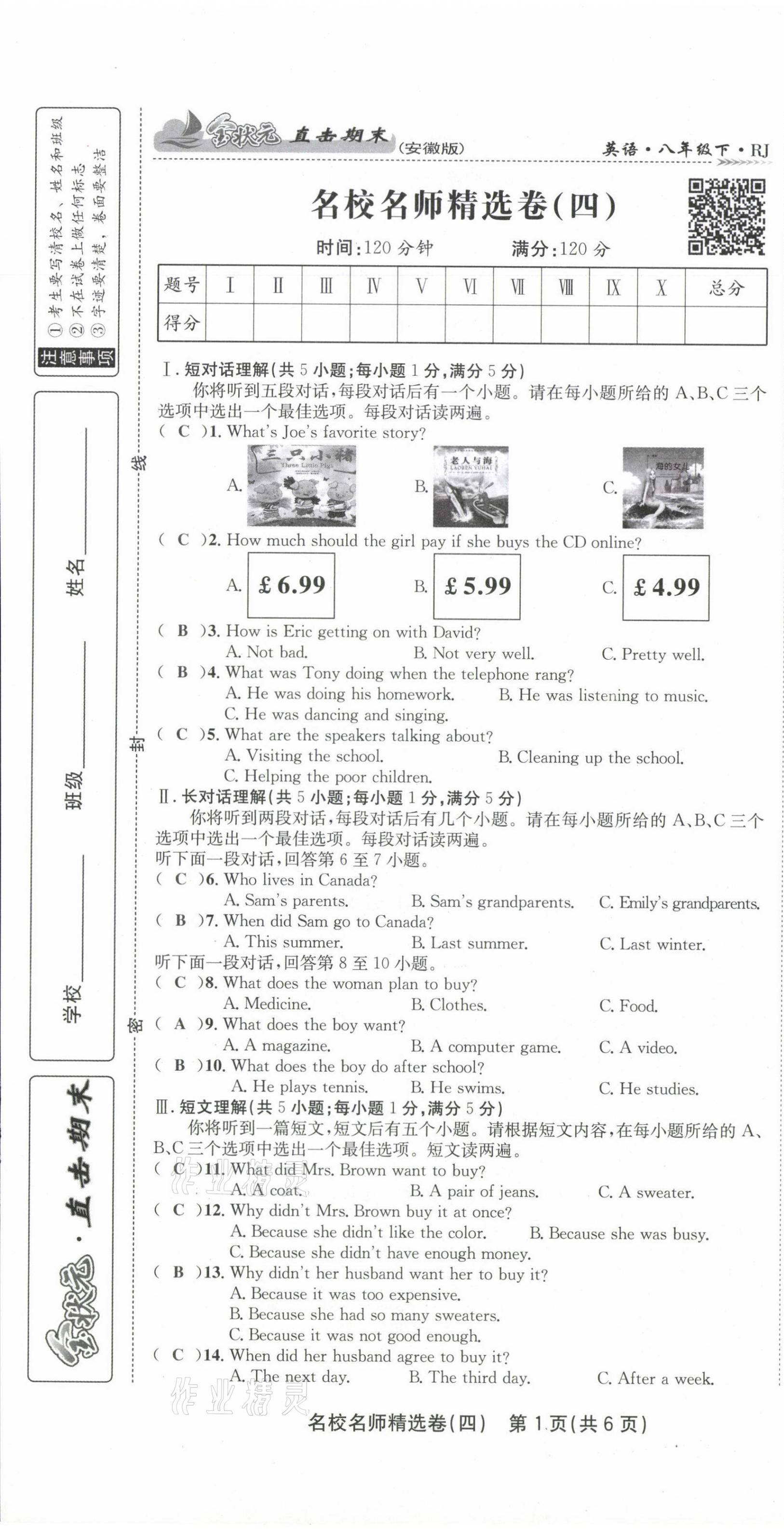 注:目前有些书本章节名称可能整理的还不是很完善,但都是按照顺序排列的,请同学们按照顺序仔细查找。练习册 2021年金状元直击期末八年级英语下册人教版 答案主要是用来给同学们做完题方便对答案用的,请勿直接抄袭。