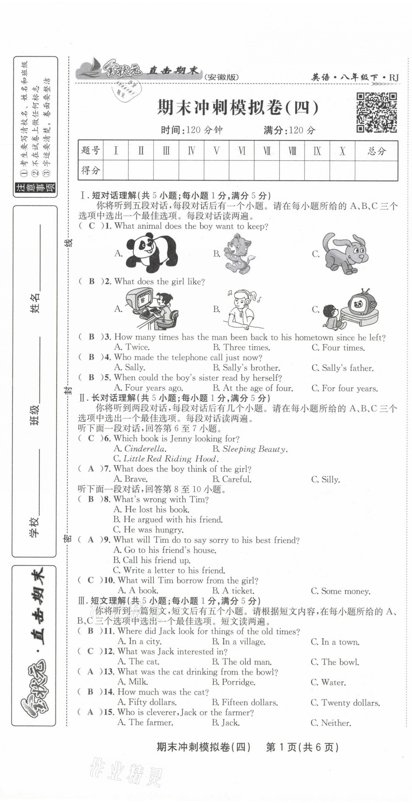 注:目前有些书本章节名称可能整理的还不是很完善,但都是按照顺序排列的,请同学们按照顺序仔细查找。练习册 2021年金状元直击期末八年级英语下册人教版 答案主要是用来给同学们做完题方便对答案用的,请勿直接抄袭。