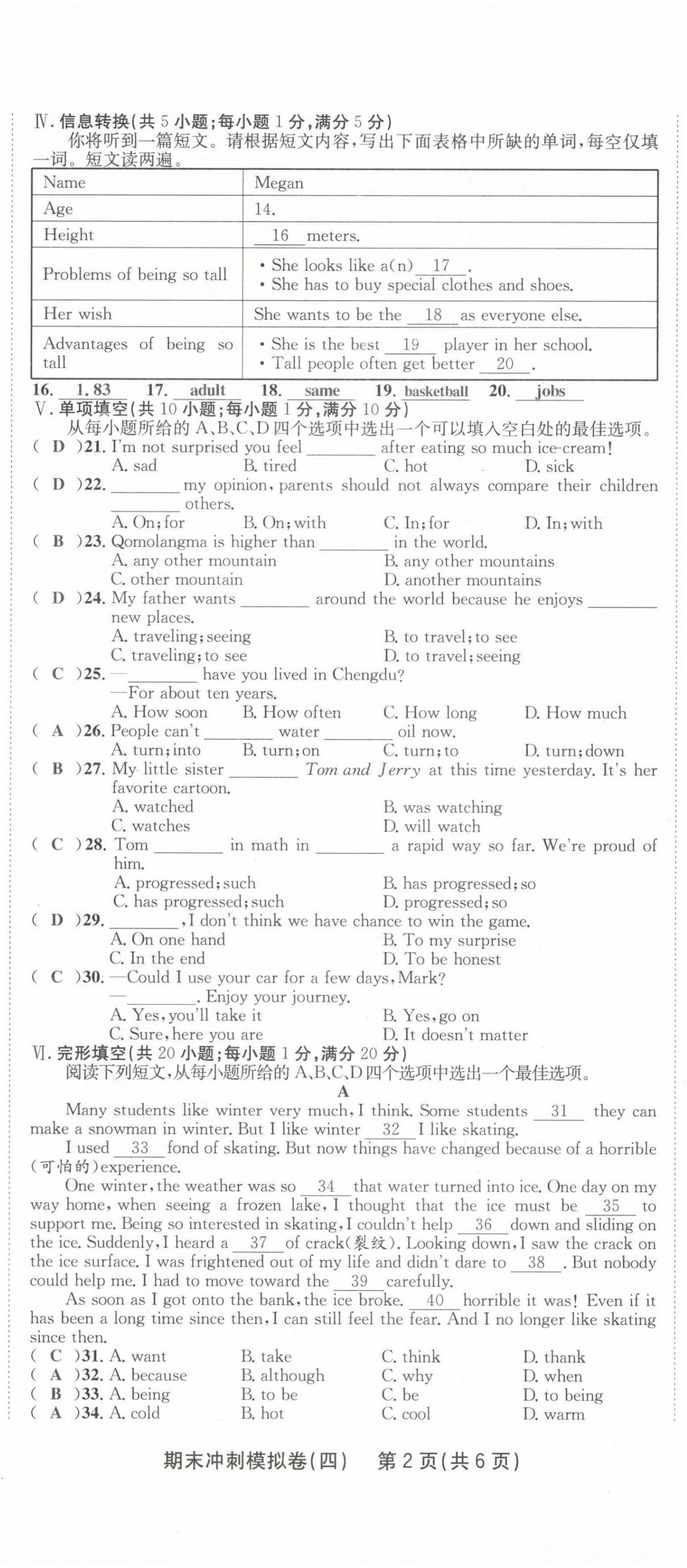注:目前有些书本章节名称可能整理的还不是很完善,但都是按照顺序排列的,请同学们按照顺序仔细查找。练习册 2021年金状元直击期末八年级英语下册人教版 答案主要是用来给同学们做完题方便对答案用的,请勿直接抄袭。