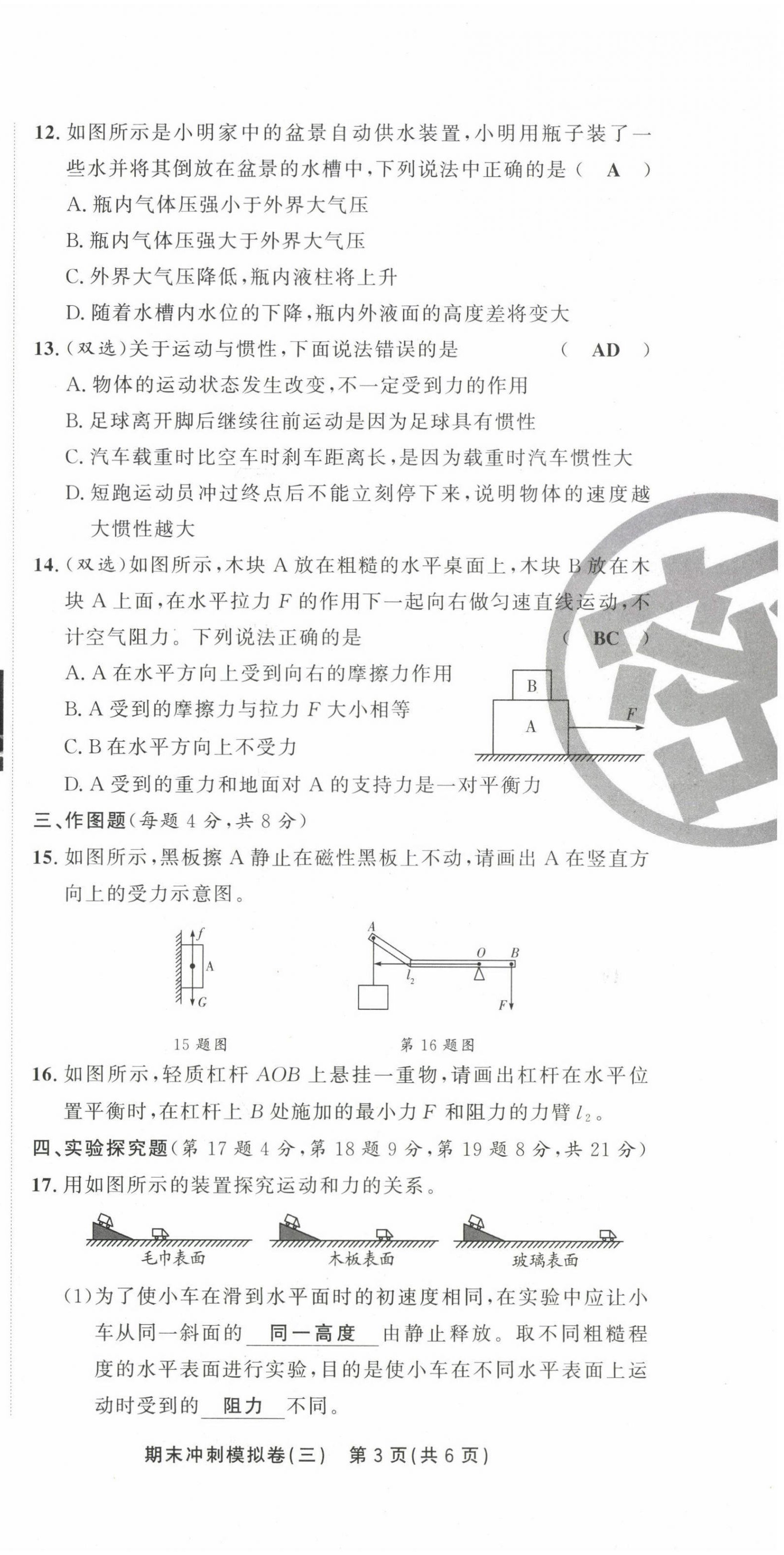 注:目前有些书本章节名称可能整理的还不是很完善,但都是按照顺序排列的,请同学们按照顺序仔细查找。练习册 2021年金状元直击期末八年级物理下册人教版 答案主要是用来给同学们做完题方便对答案用的,请勿直接抄袭。