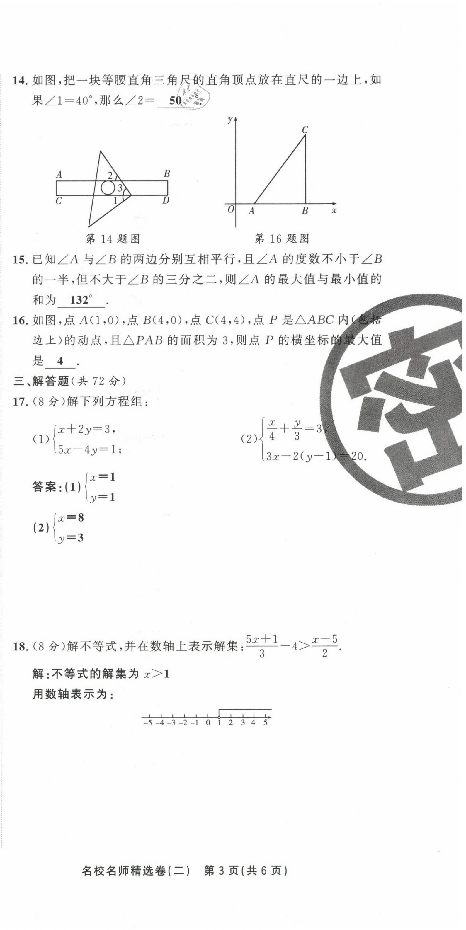 注:目前有些书本章节名称可能整理的还不是很完善,但都是按照顺序排列的,请同学们按照顺序仔细查找。练习册 2021年金状元直击期末七年级数学下册人教版 答案主要是用来给同学们做完题方便对答案用的,请勿直接抄袭。