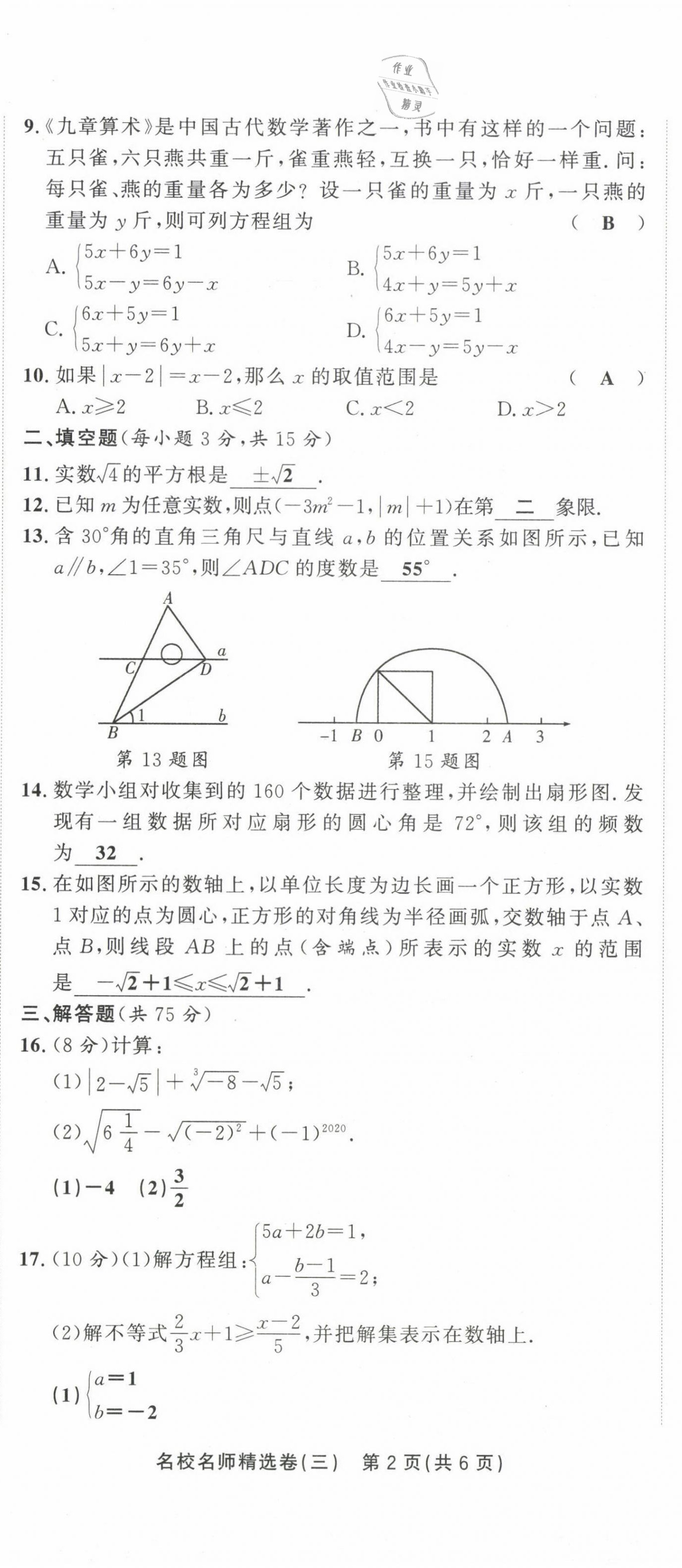 注:目前有些书本章节名称可能整理的还不是很完善,但都是按照顺序排列的,请同学们按照顺序仔细查找。练习册 2021年金状元直击期末七年级数学下册人教版 答案主要是用来给同学们做完题方便对答案用的,请勿直接抄袭。