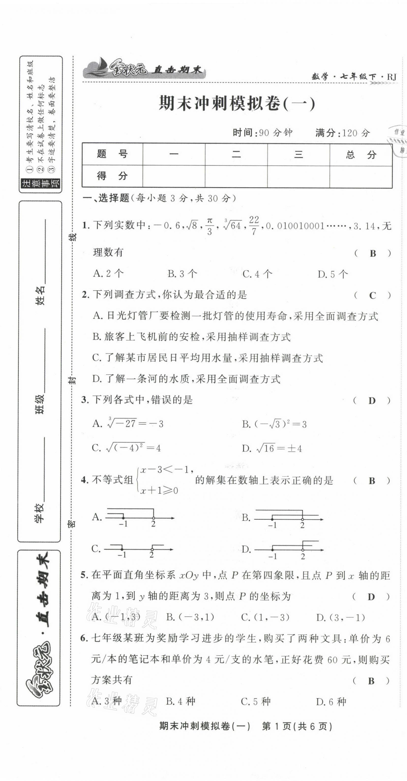注:目前有些书本章节名称可能整理的还不是很完善,但都是按照顺序排列的,请同学们按照顺序仔细查找。练习册 2021年金状元直击期末七年级数学下册人教版 答案主要是用来给同学们做完题方便对答案用的,请勿直接抄袭。