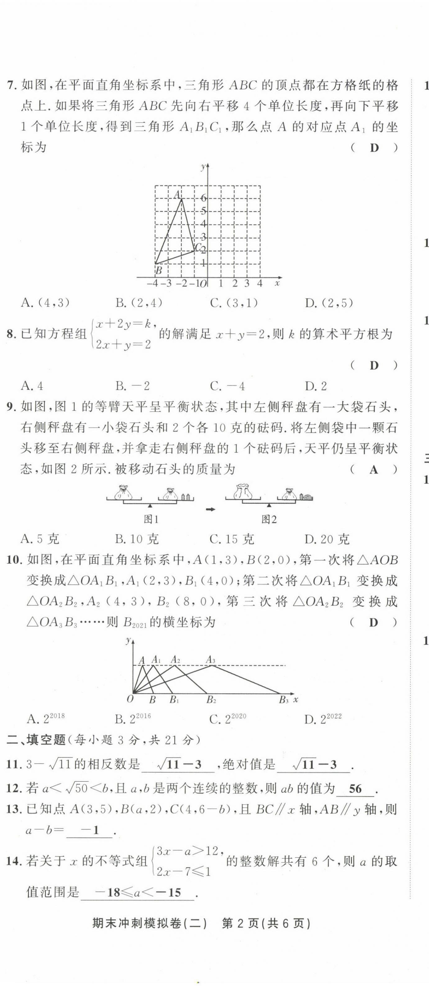 注:目前有些书本章节名称可能整理的还不是很完善,但都是按照顺序排列的,请同学们按照顺序仔细查找。练习册 2021年金状元直击期末七年级数学下册人教版 答案主要是用来给同学们做完题方便对答案用的,请勿直接抄袭。