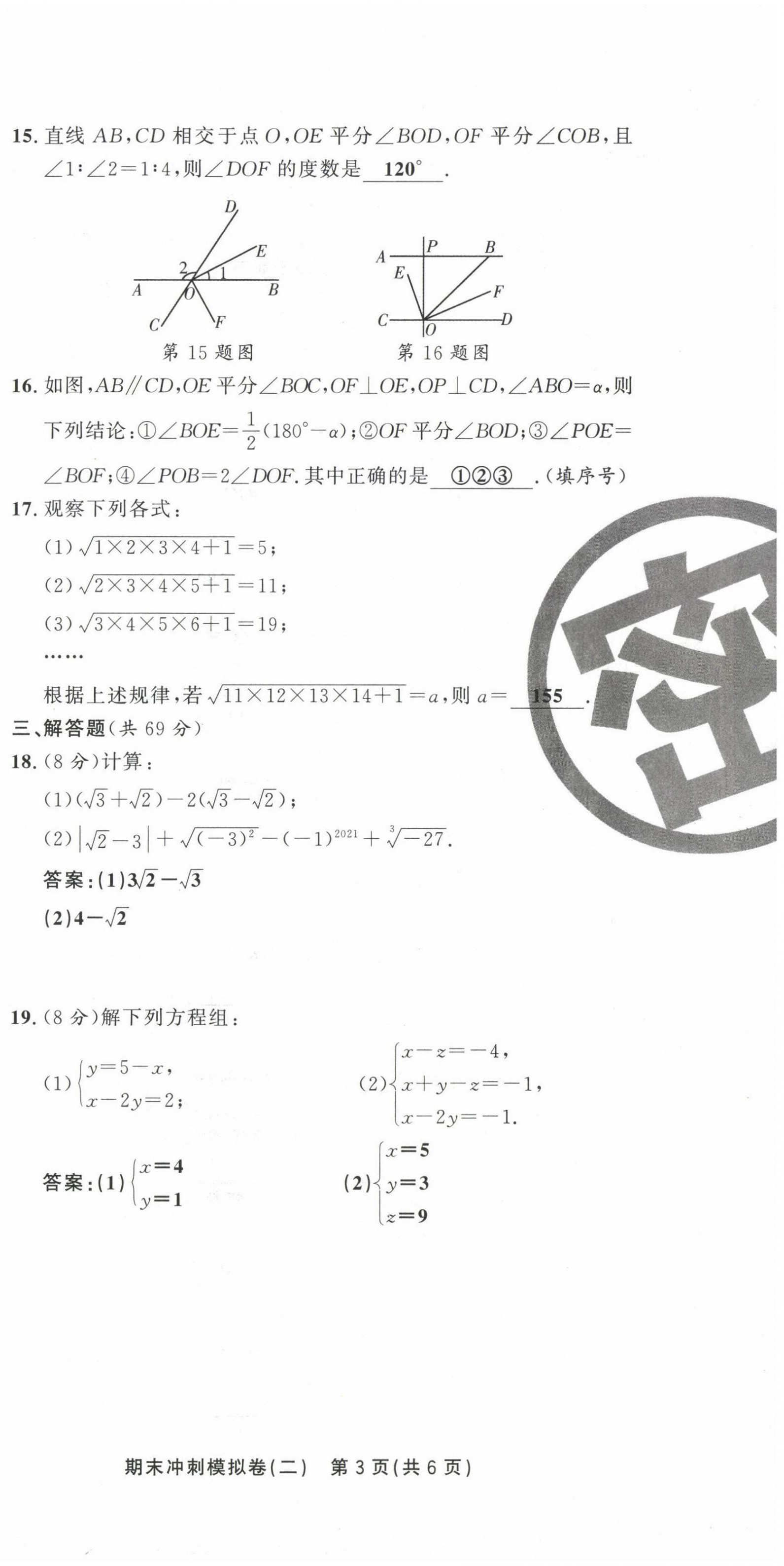 注:目前有些书本章节名称可能整理的还不是很完善,但都是按照顺序排列的,请同学们按照顺序仔细查找。练习册 2021年金状元直击期末七年级数学下册人教版 答案主要是用来给同学们做完题方便对答案用的,请勿直接抄袭。