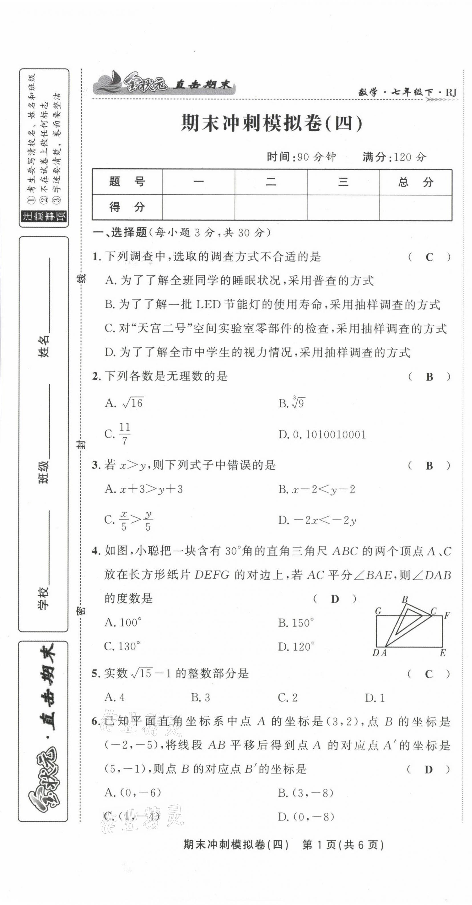 注:目前有些书本章节名称可能整理的还不是很完善,但都是按照顺序排列的,请同学们按照顺序仔细查找。练习册 2021年金状元直击期末七年级数学下册人教版 答案主要是用来给同学们做完题方便对答案用的,请勿直接抄袭。