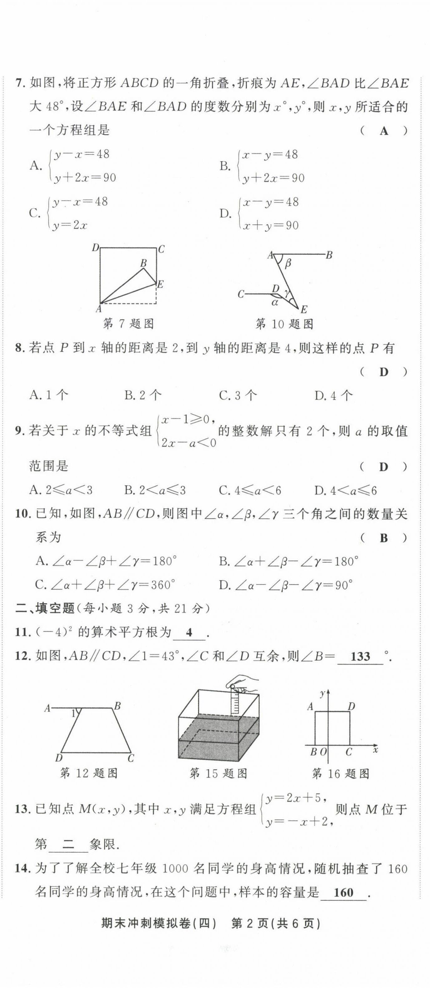 注:目前有些书本章节名称可能整理的还不是很完善,但都是按照顺序排列的,请同学们按照顺序仔细查找。练习册 2021年金状元直击期末七年级数学下册人教版 答案主要是用来给同学们做完题方便对答案用的,请勿直接抄袭。