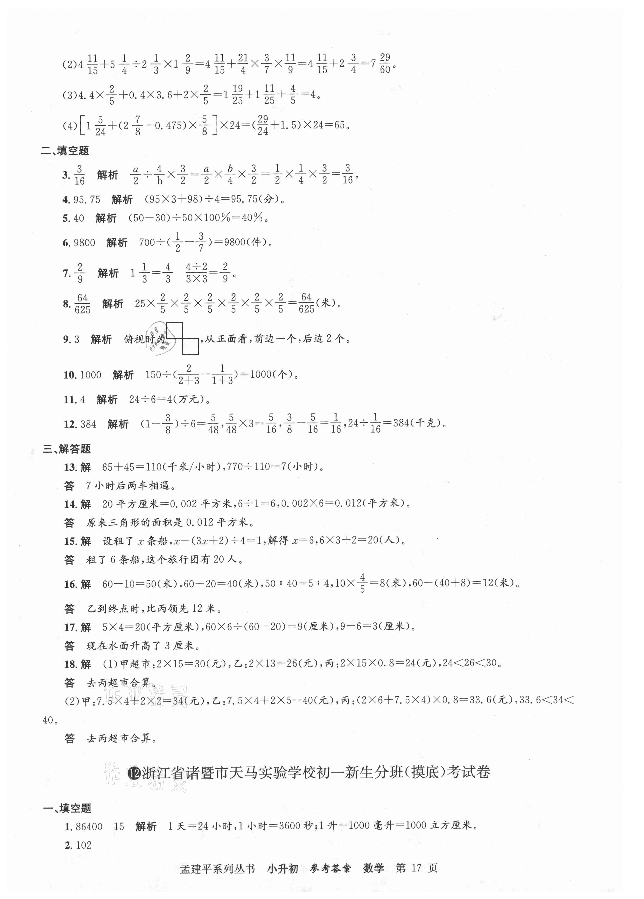 注:目前有些书本章节名称可能整理的还不是很完善,但都是按照顺序排列的,请同学们按照顺序仔细查找。练习册 2021年孟建平小升初名校新生分班摸底考试卷数学 答案主要是用来给同学们做完题方便对答案用的,请勿直接抄袭。