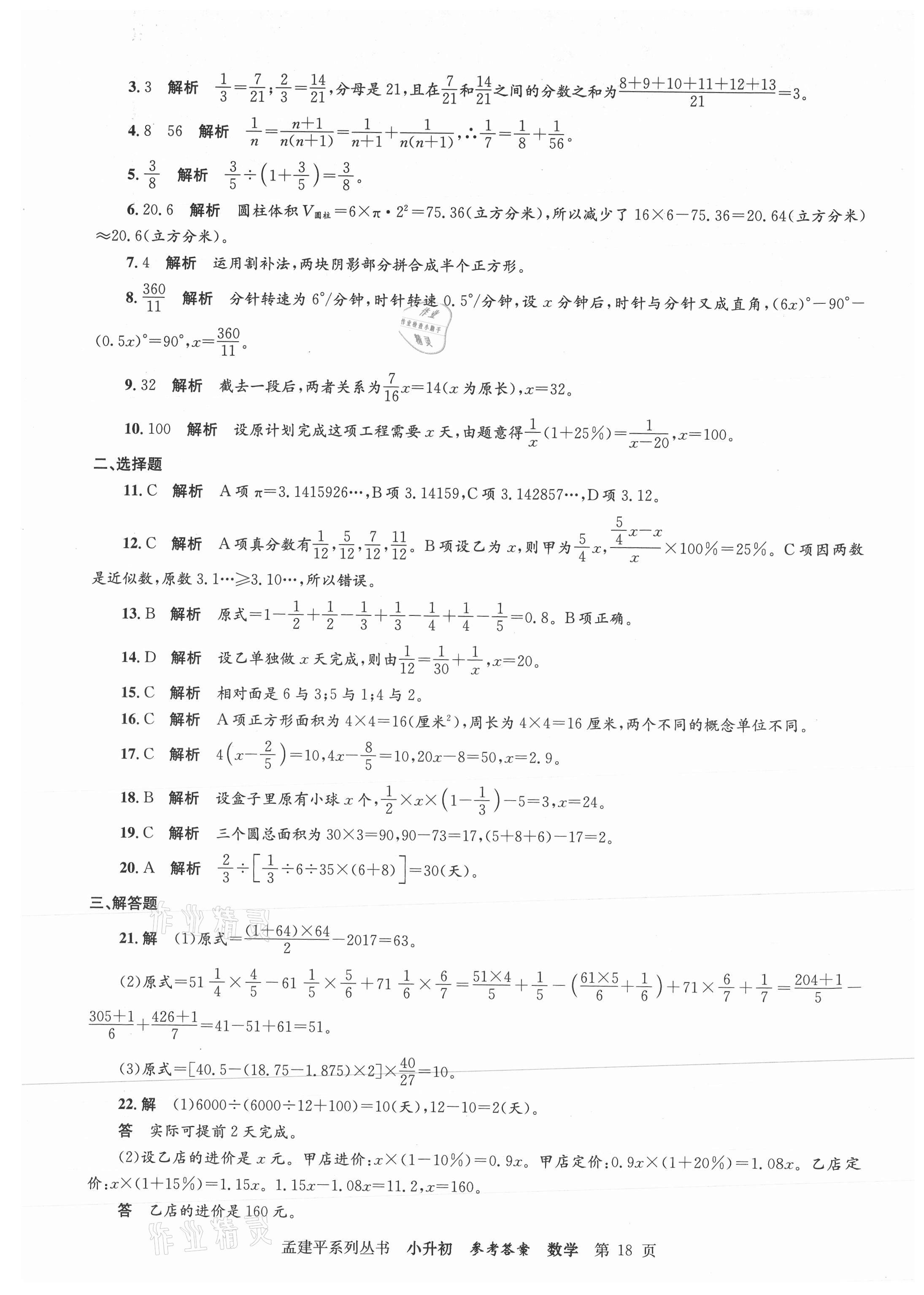 注:目前有些书本章节名称可能整理的还不是很完善,但都是按照顺序排列的,请同学们按照顺序仔细查找。练习册 2021年孟建平小升初名校新生分班摸底考试卷数学 答案主要是用来给同学们做完题方便对答案用的,请勿直接抄袭。