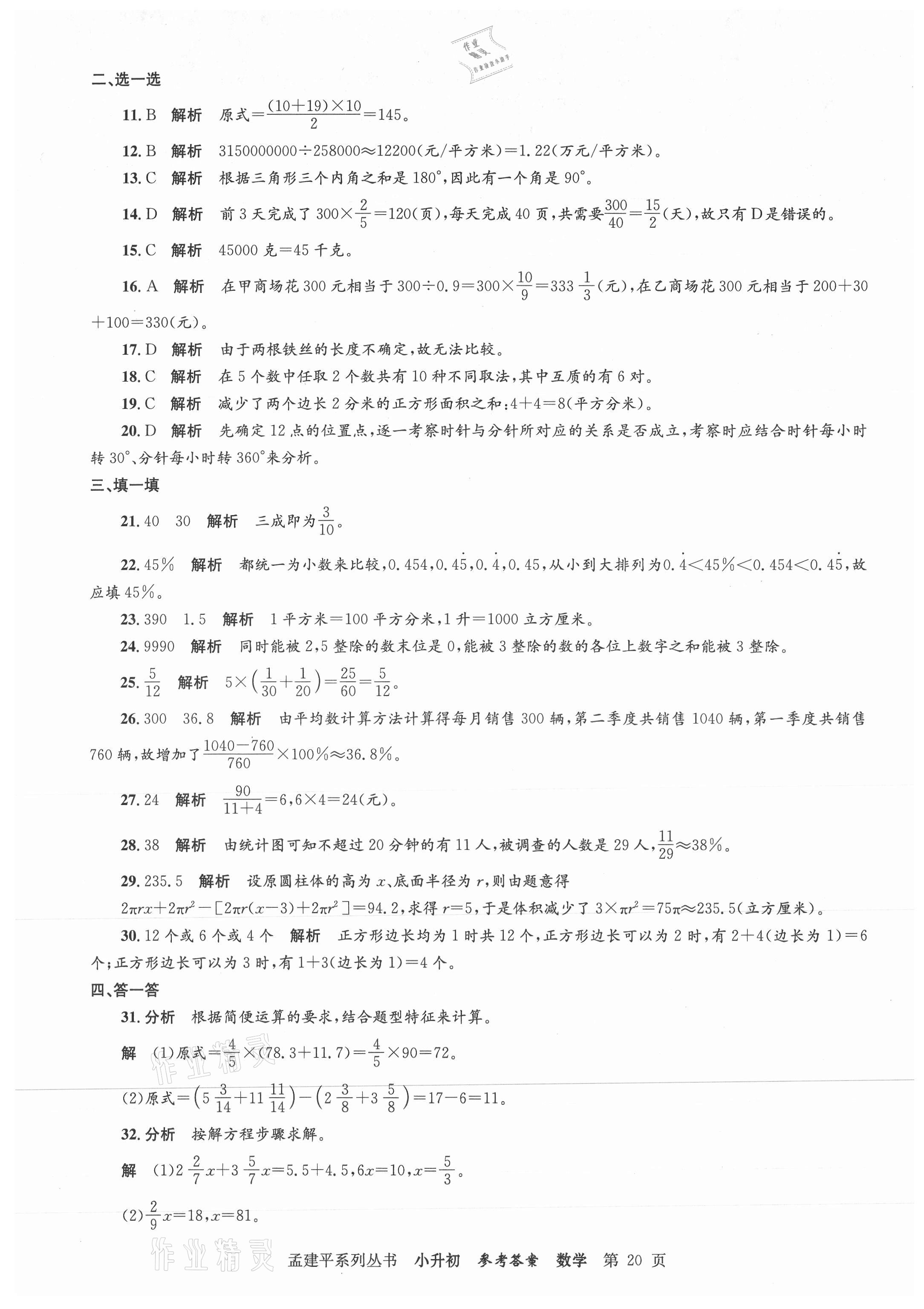 注:目前有些书本章节名称可能整理的还不是很完善,但都是按照顺序排列的,请同学们按照顺序仔细查找。练习册 2021年孟建平小升初名校新生分班摸底考试卷数学 答案主要是用来给同学们做完题方便对答案用的,请勿直接抄袭。