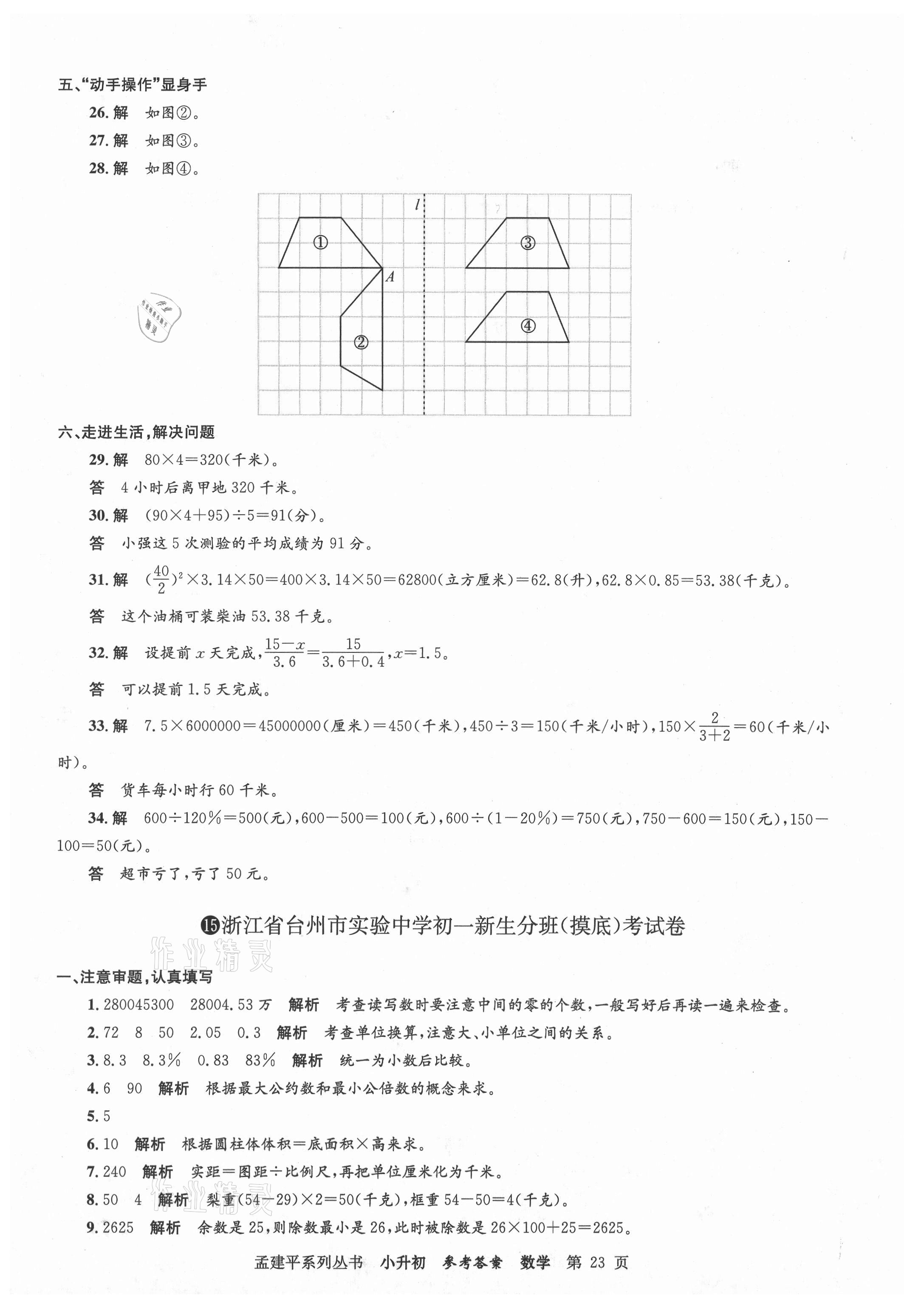 注:目前有些书本章节名称可能整理的还不是很完善,但都是按照顺序排列的,请同学们按照顺序仔细查找。练习册 2021年孟建平小升初名校新生分班摸底考试卷数学 答案主要是用来给同学们做完题方便对答案用的,请勿直接抄袭。
