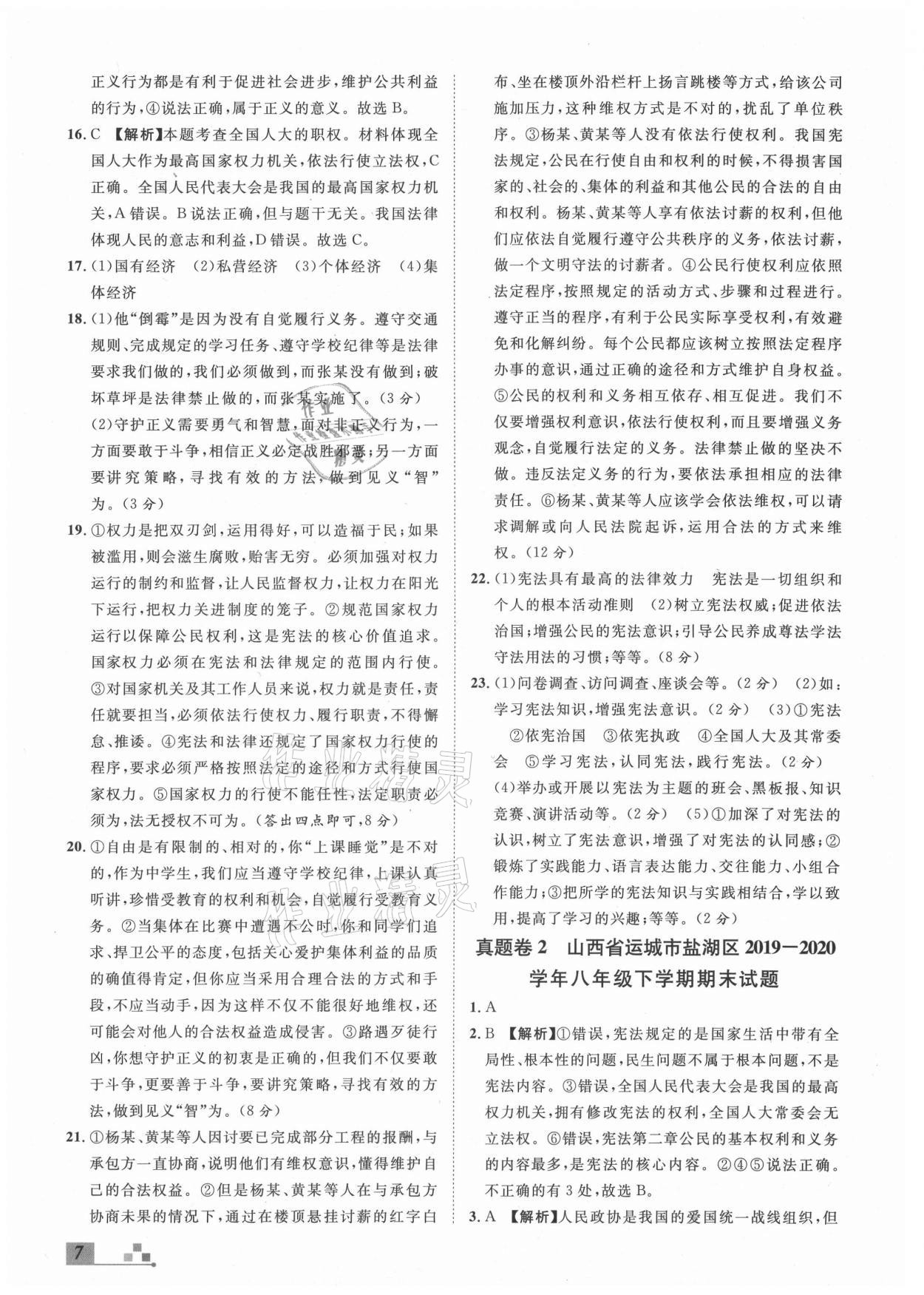 注:目前有些书本章节名称可能整理的还不是很完善,但都是按照顺序排列的,请同学们按照顺序仔细查找。练习册 2021年本土期末卷八年级道德与法治下册人教版山西专版 答案主要是用来给同学们做完题方便对答案用的,请勿直接抄袭。