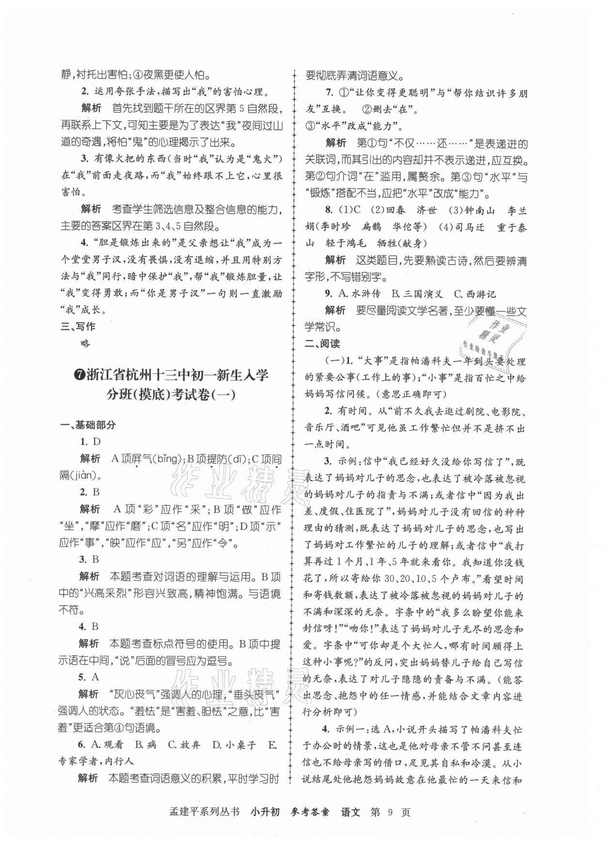 注:目前有些书本章节名称可能整理的还不是很完善,但都是按照顺序排列的,请同学们按照顺序仔细查找。练习册 2021年孟建平小升初名校新生分班摸底考试卷语文 答案主要是用来给同学们做完题方便对答案用的,请勿直接抄袭。