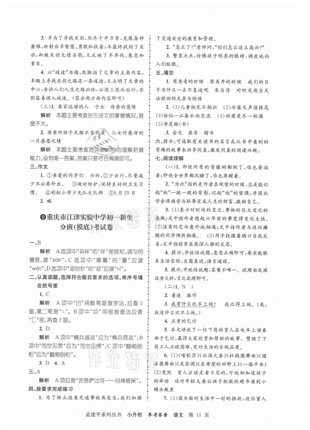 2021年孟建平小升初名校新生分班摸底考试卷语文
