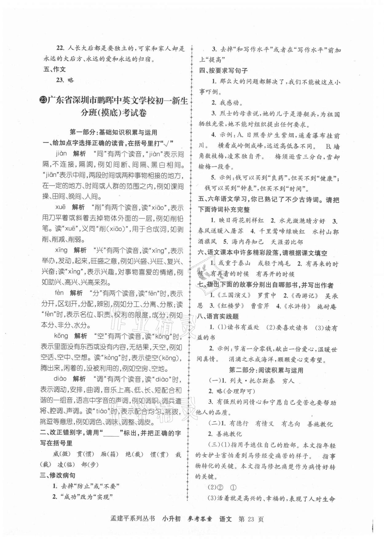 2021年孟建平小升初名校新生分班摸底考试卷语文