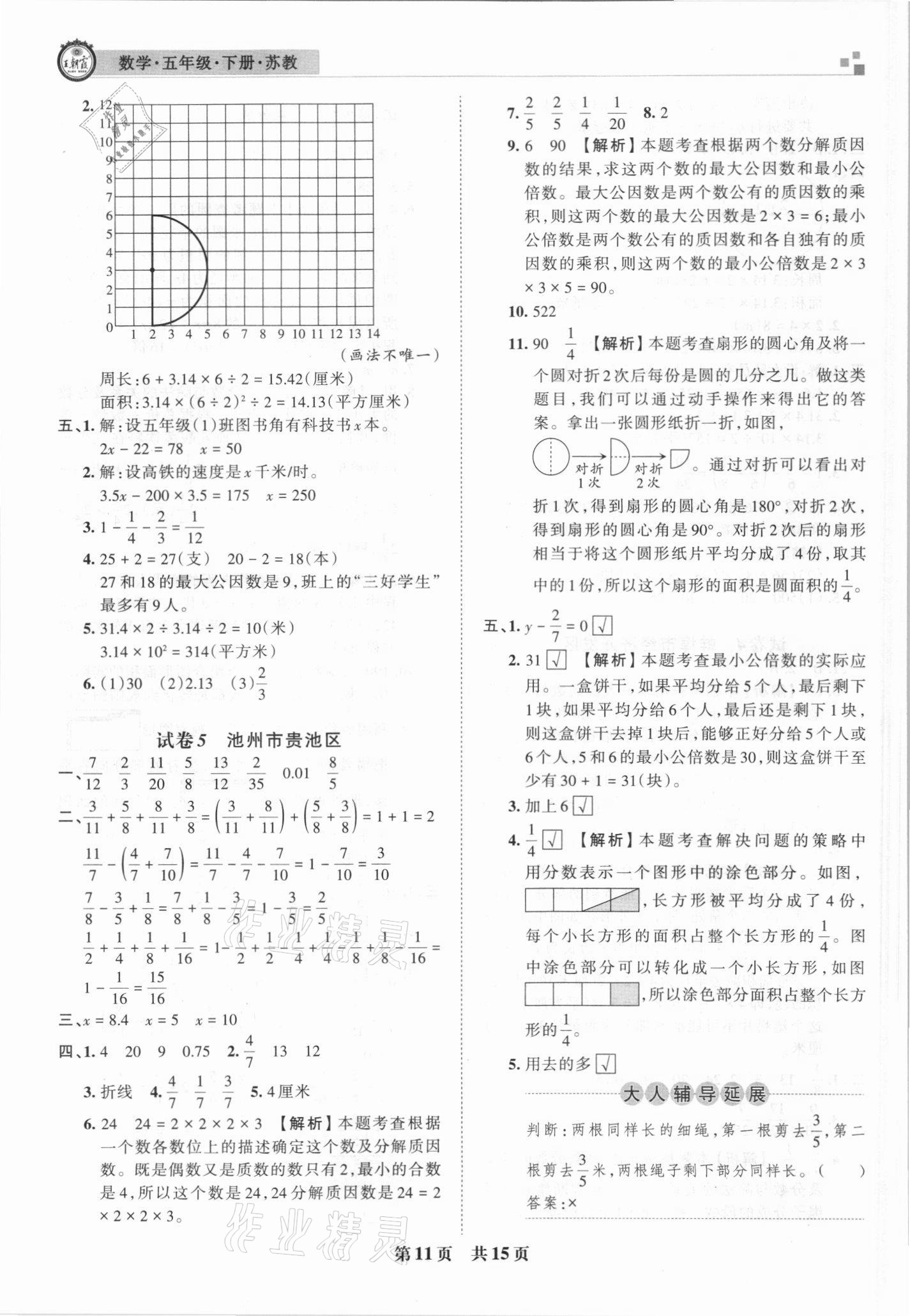 《2021年王朝霞期末试卷研究五年级数学下册苏教版安徽专版》