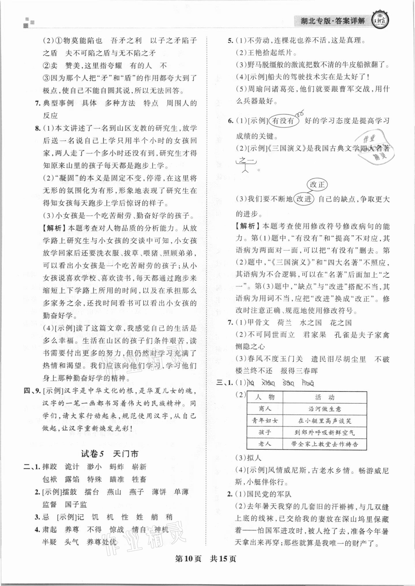 注:目前有些书本章节名称可能整理的还不是很完善,但都是按照顺序排列的,请同学们按照顺序仔细查找。练习册 2021年王朝霞各地期末试卷精选五年级语文下册人教版 答案主要是用来给同学们做完题方便对答案用的,请勿直接抄袭。