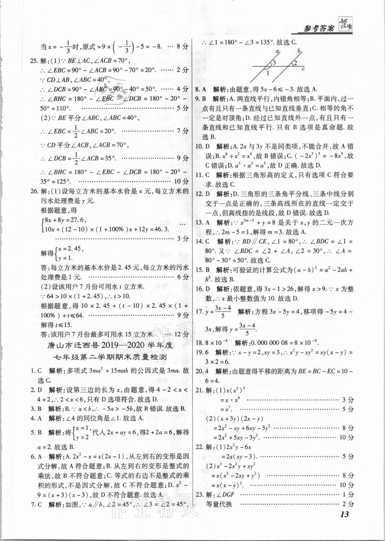 注:目前有些书本章节名称可能整理的还不是很完善,但都是按照顺序排列的,请同学们按照顺序仔细查找。练习册 2021年授之以渔期末复习方案七年级数学下册冀教版 答案主要是用来给同学们做完题方便对答案用的,请勿直接抄袭。