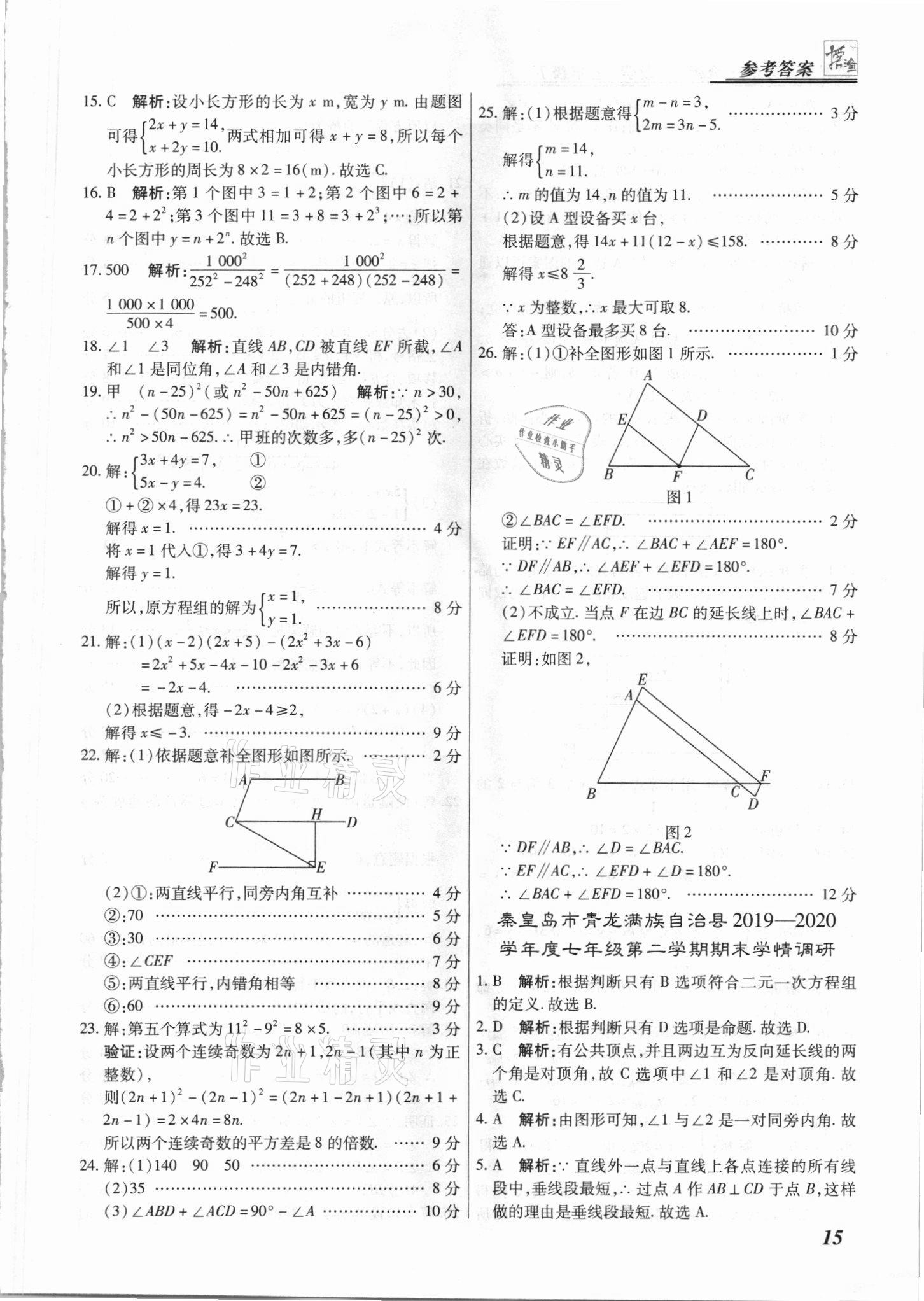 注:目前有些书本章节名称可能整理的还不是很完善,但都是按照顺序排列的,请同学们按照顺序仔细查找。练习册 2021年授之以渔期末复习方案七年级数学下册冀教版 答案主要是用来给同学们做完题方便对答案用的,请勿直接抄袭。