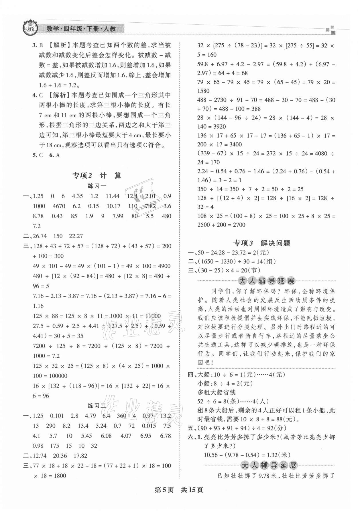 2021年王朝霞各地期末试卷精选四年级数学下册人教版洛阳专版