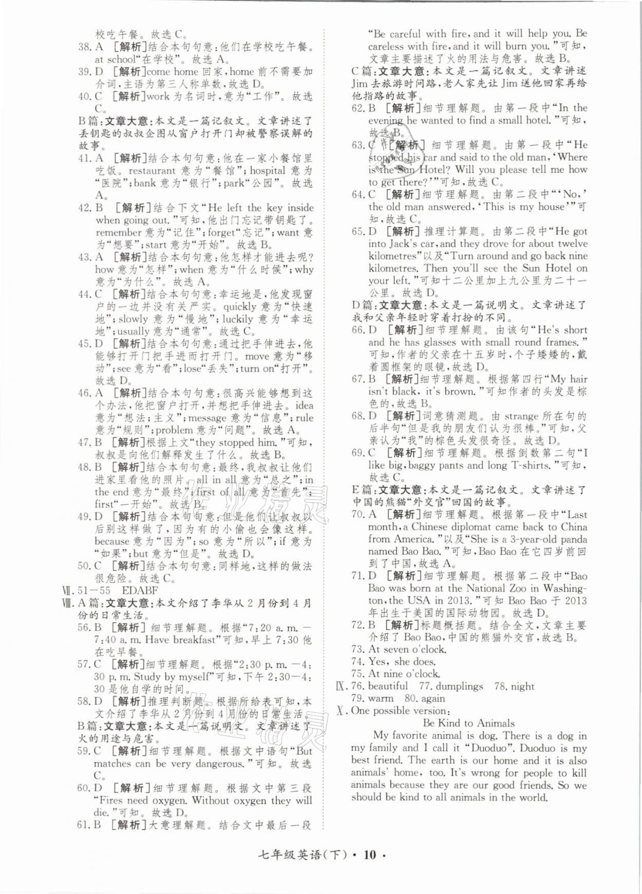 注:目前有些书本章节名称可能整理的还不是很完善,但都是按照顺序排列的,请同学们按照顺序仔细查找。练习册 2021年金牌备考卷七年级英语下册译林版 答案主要是用来给同学们做完题方便对答案用的,请勿直接抄袭。