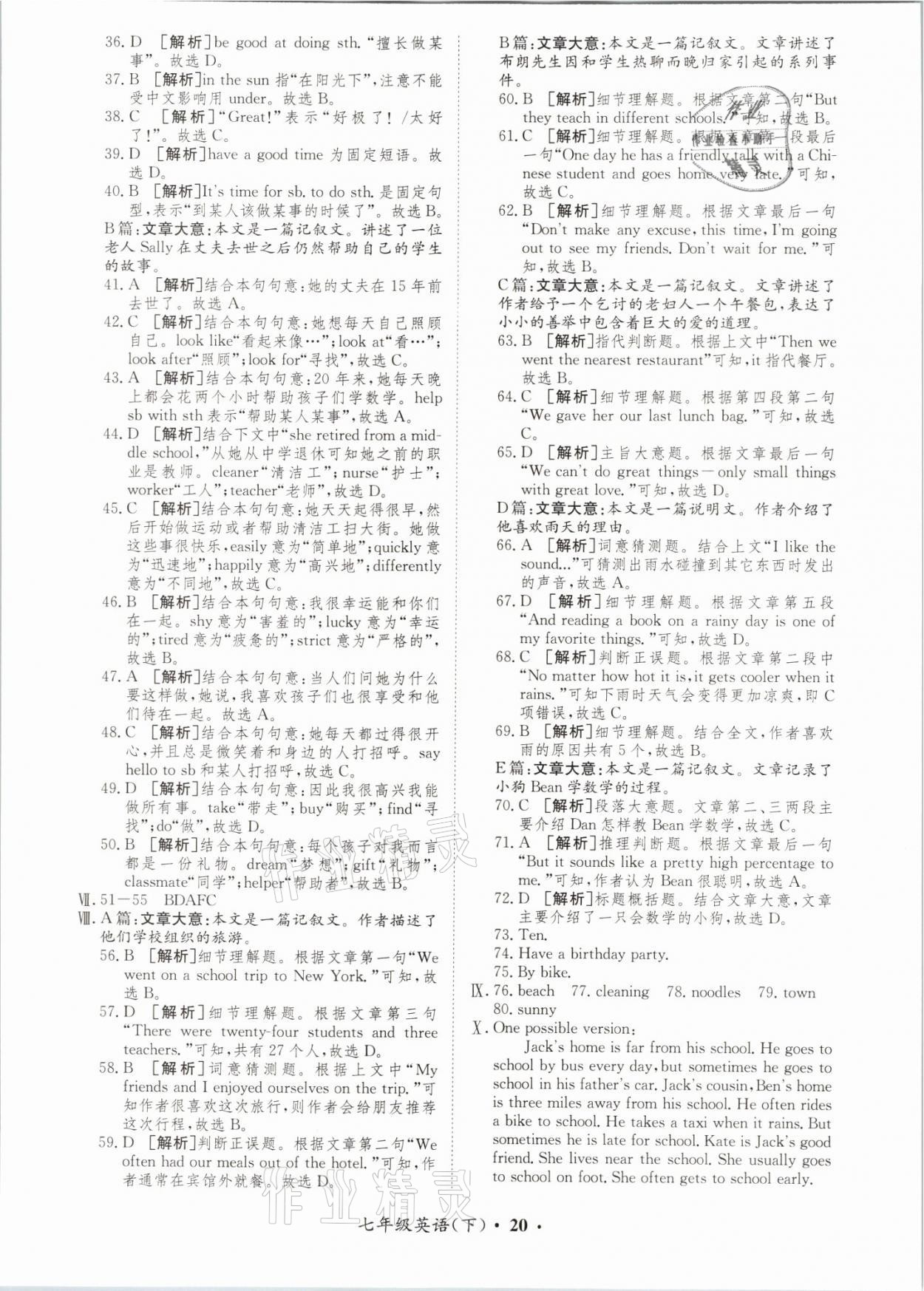 注:目前有些书本章节名称可能整理的还不是很完善,但都是按照顺序排列的,请同学们按照顺序仔细查找。练习册 2021年金牌备考卷七年级英语下册译林版 答案主要是用来给同学们做完题方便对答案用的,请勿直接抄袭。