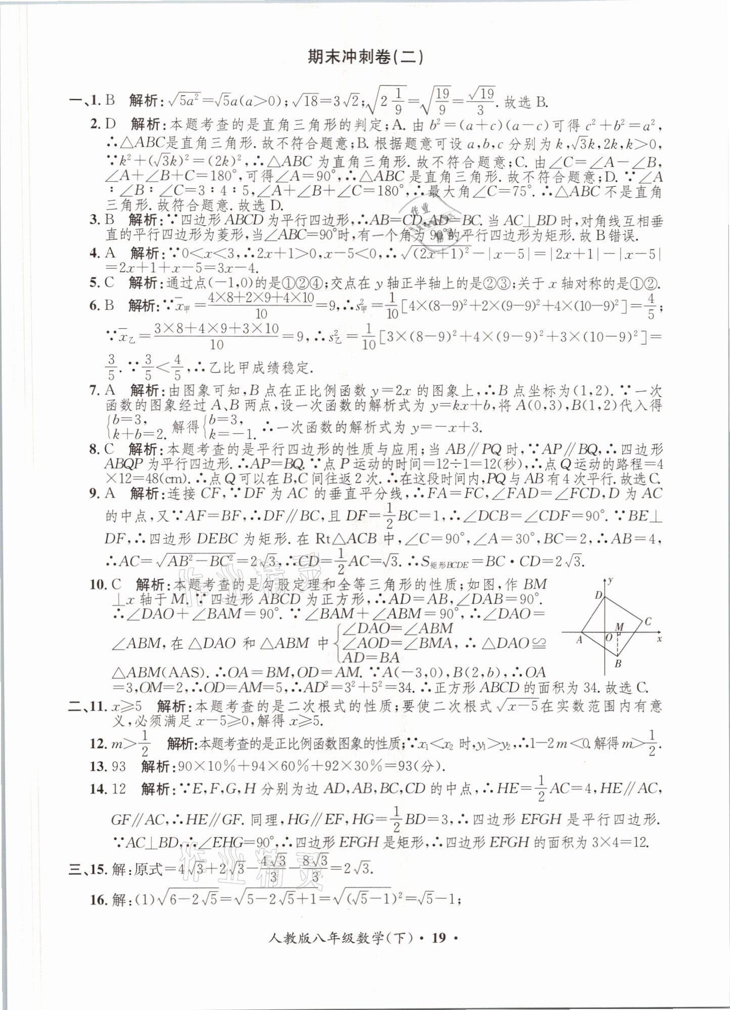 注:目前有些书本章节名称可能整理的还不是很完善,但都是按照顺序排列的,请同学们按照顺序仔细查找。练习册 2021年金牌备考卷八年级数学下册人教版 答案主要是用来给同学们做完题方便对答案用的,请勿直接抄袭。