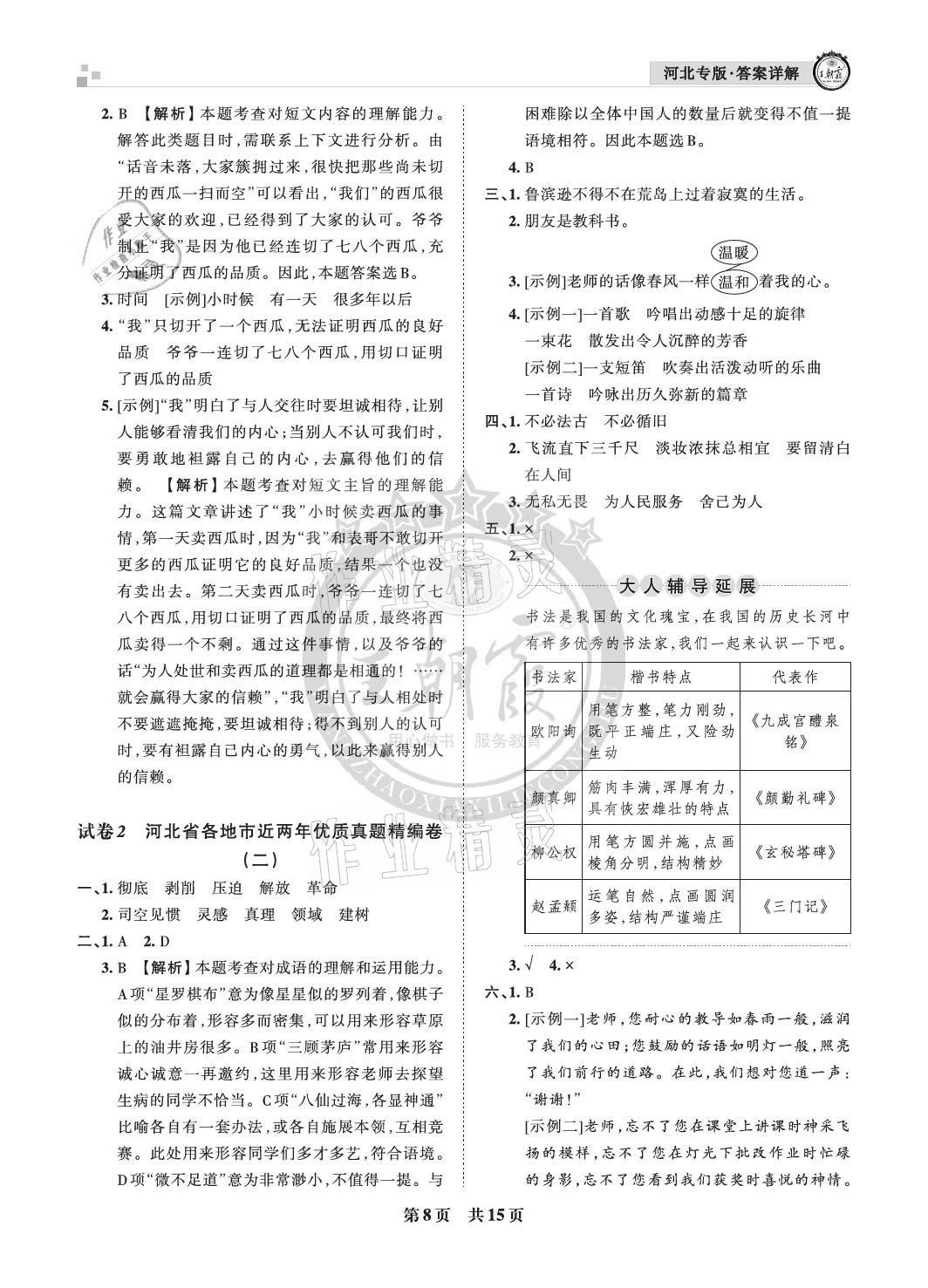 注:目前有些书本章节名称可能整理的还不是很完善,但都是按照顺序排列的,请同学们按照顺序仔细查找。练习册 2021年王朝霞各地期末试卷精选六年级语文下册人教版河北专版 答案主要是用来给同学们做完题方便对答案用的,请勿直接抄袭。