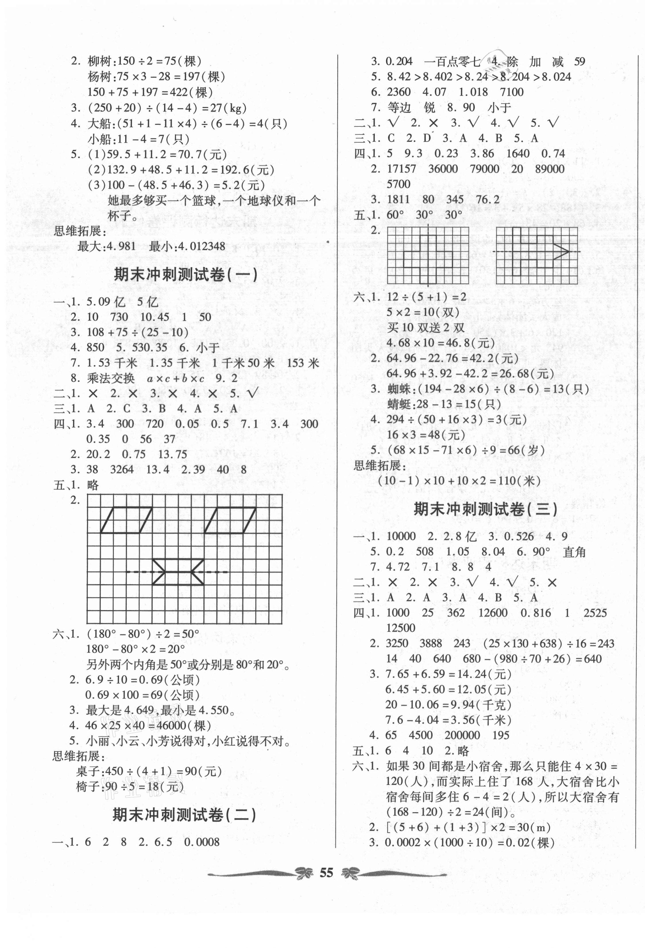 2021年小学生名校百分卷期末100分四年级数学下册人教版