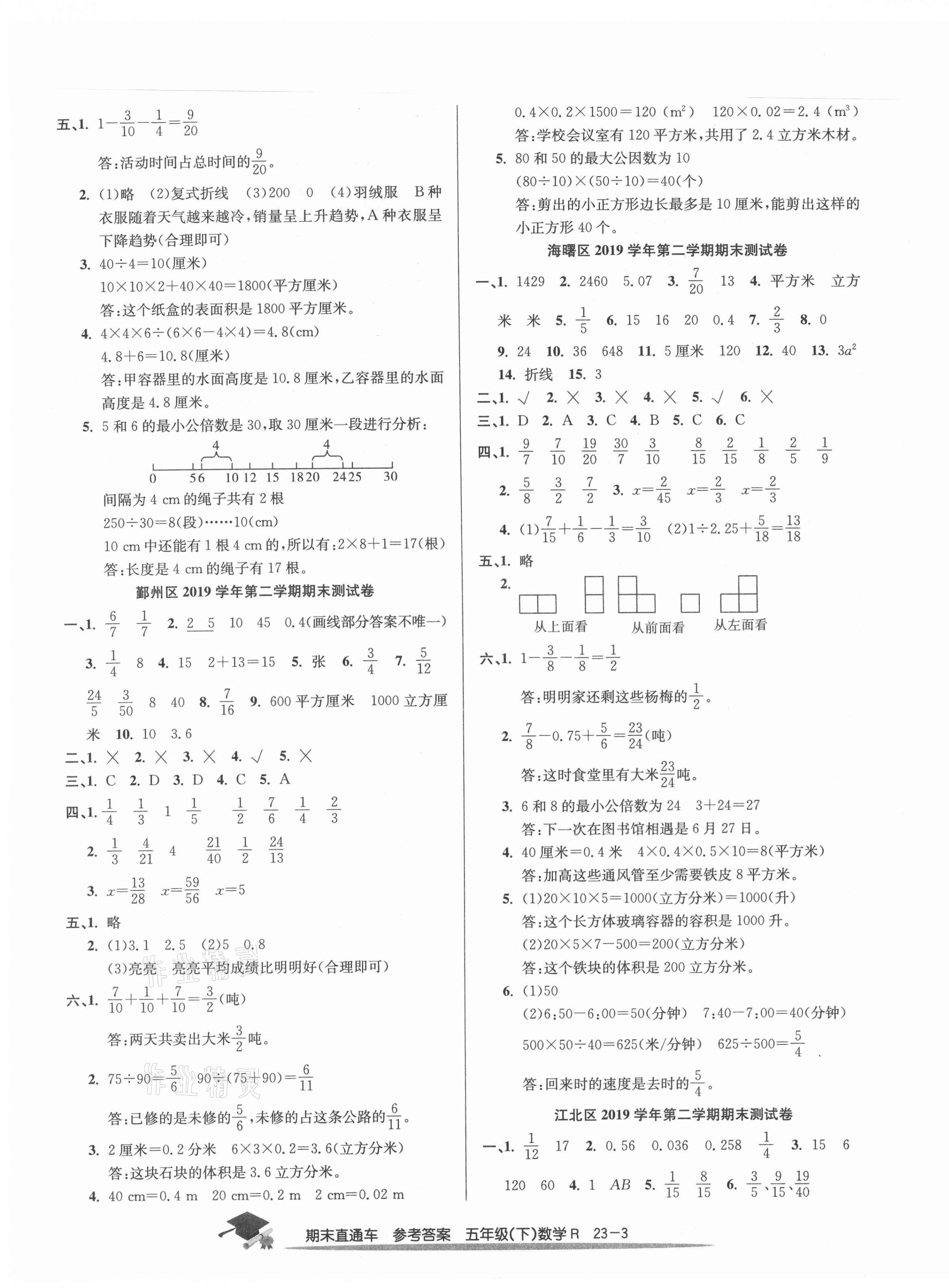 注:目前有些书本章节名称可能整理的还不是很完善,但都是按照顺序排列的,请同学们按照顺序仔细查找。练习册 2021年期末直通车五年级数学下册人教版宁波专版 答案主要是用来给同学们做完题方便对答案用的,请勿直接抄袭。