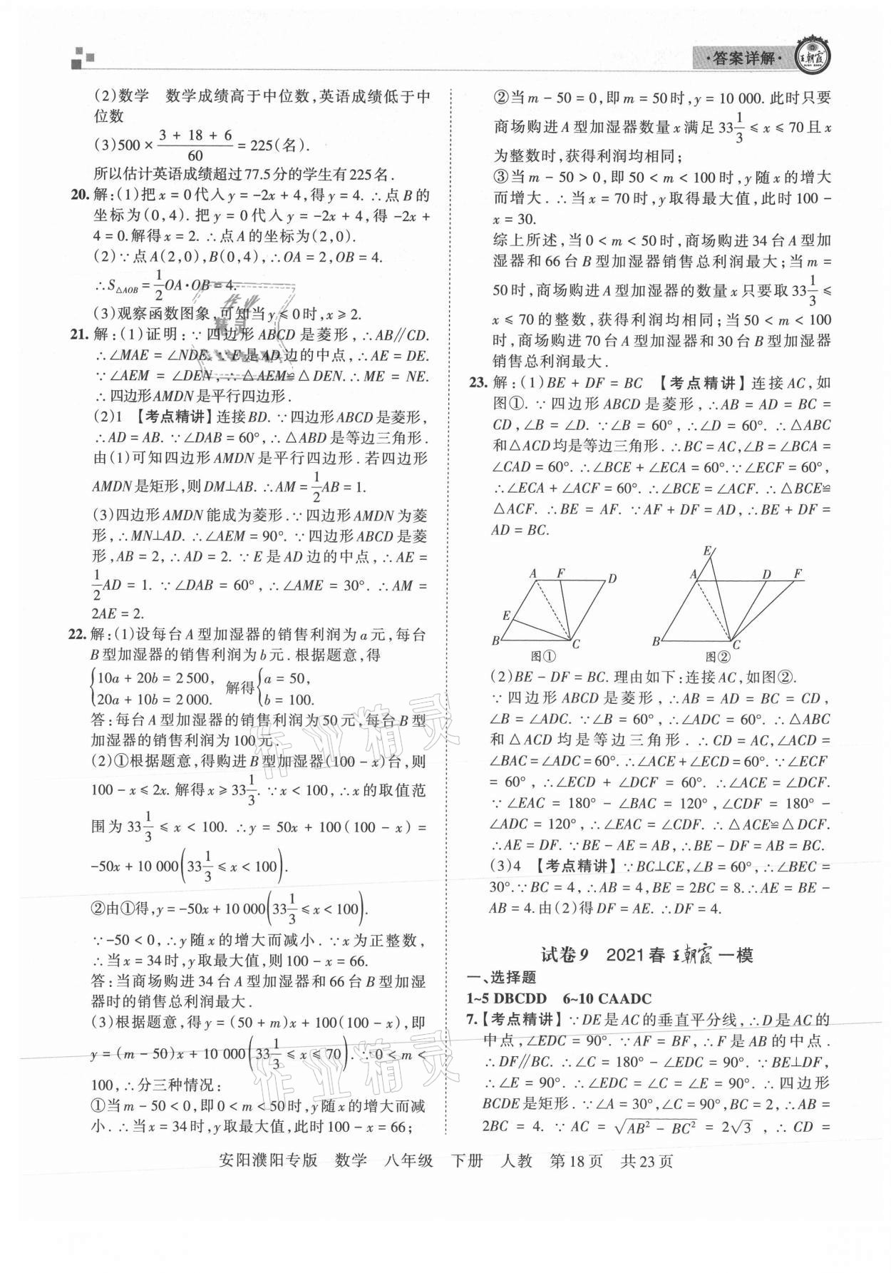 注:目前有些书本章节名称可能整理的还不是很完善,但都是按照顺序排列的,请同学们按照顺序仔细查找。练习册 2021年王朝霞期末真题精编八年级数学下册人教版安濮专版 答案主要是用来给同学们做完题方便对答案用的,请勿直接抄袭。