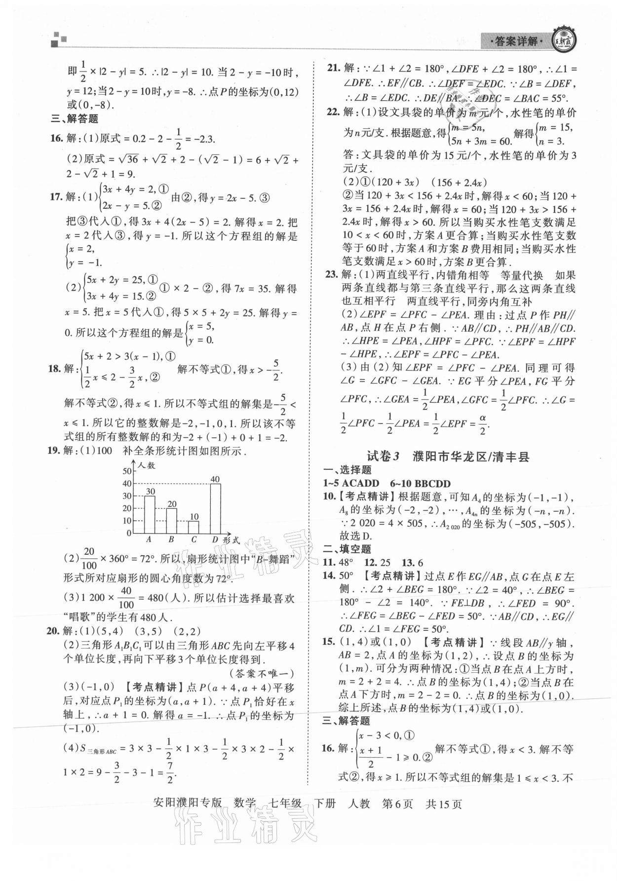 注:目前有些书本章节名称可能整理的还不是很完善,但都是按照顺序排列的,请同学们按照顺序仔细查找。练习册 2021年王朝霞期末真题精编七年级数学下册人教版安濮专版 答案主要是用来给同学们做完题方便对答案用的,请勿直接抄袭。