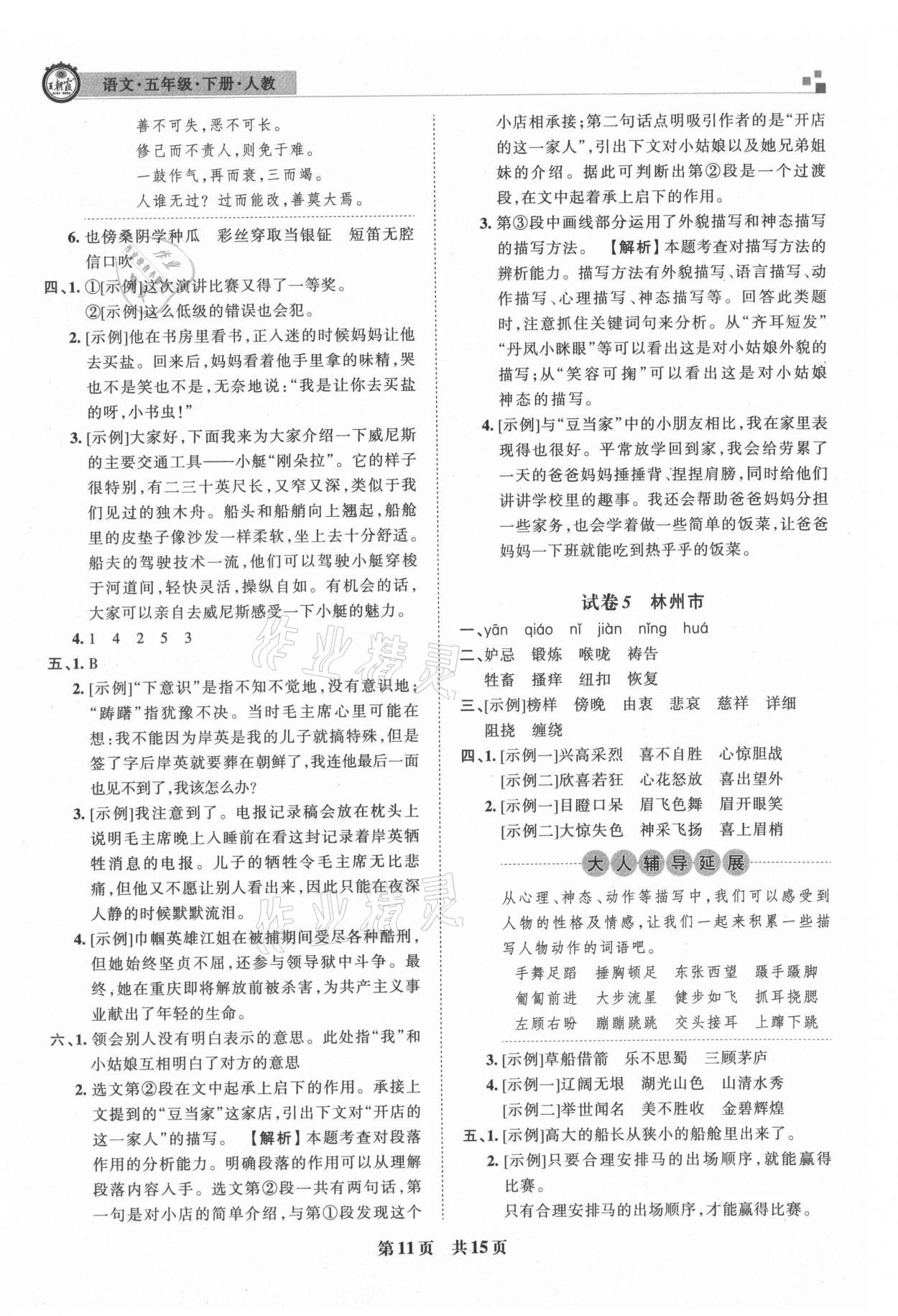 2021年王朝霞期末真题精编五年级语文下册人教版安濮专版