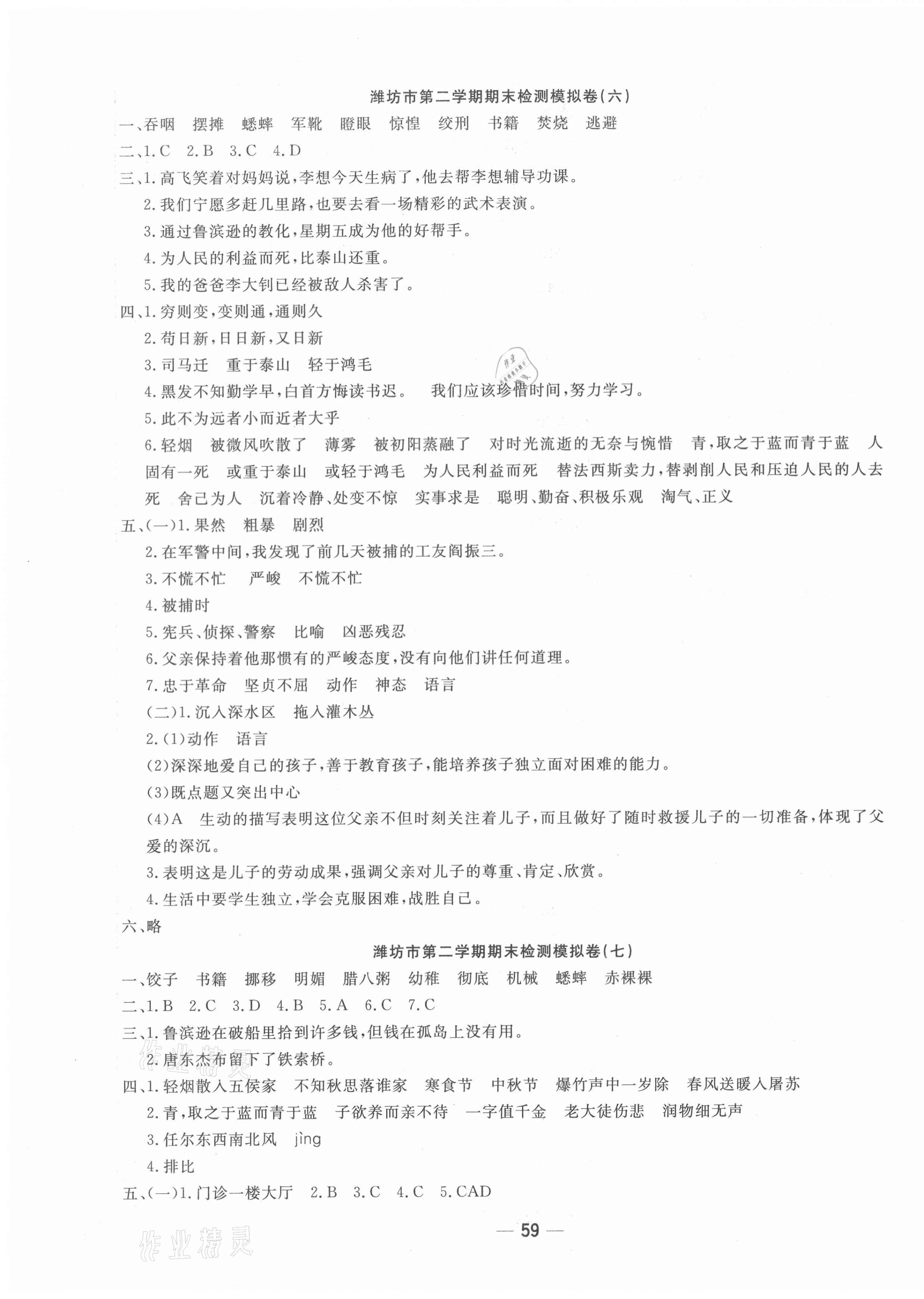 2021年学海金卷期末大赢家六年级语文下册人教版潍坊专版