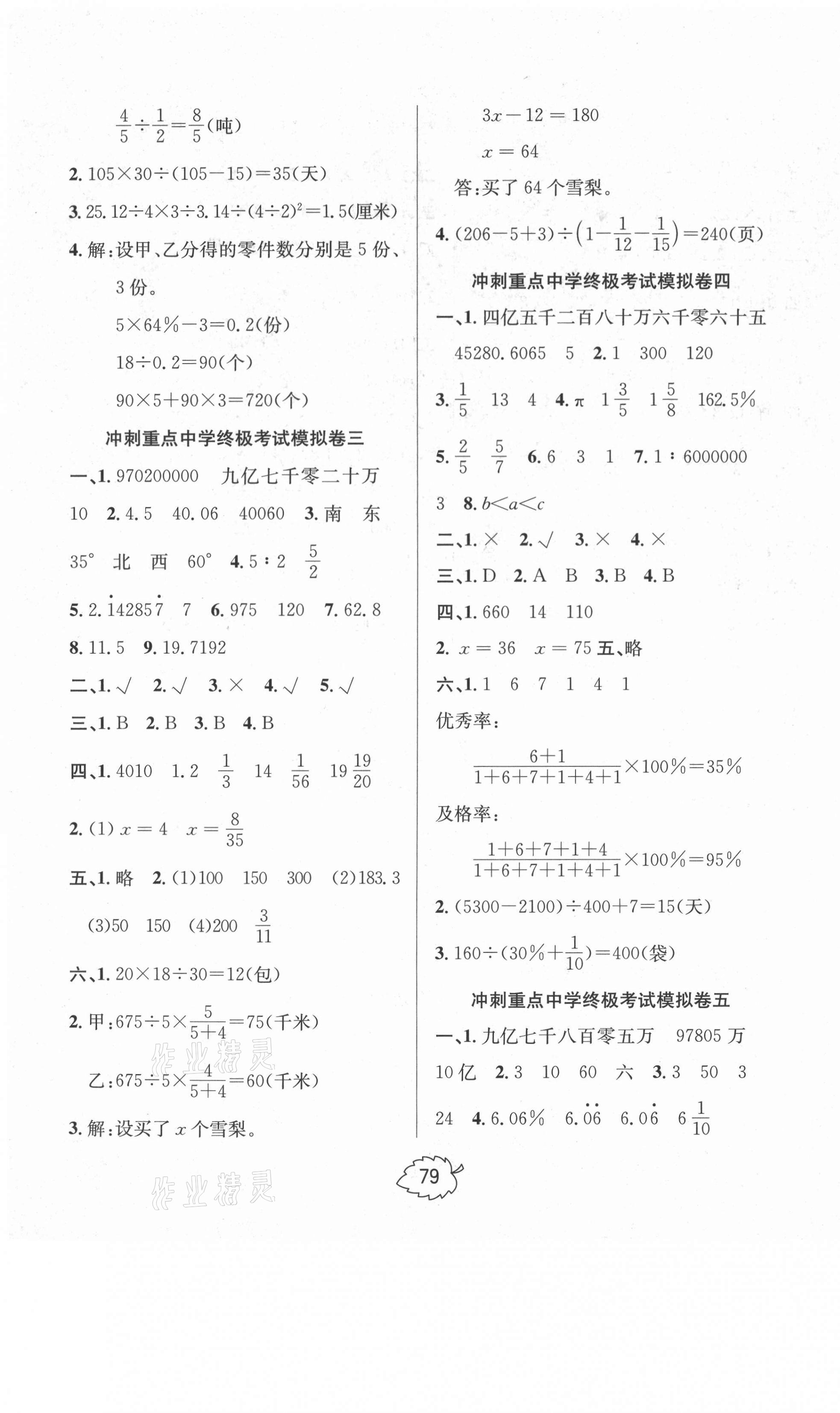 注:目前有些书本章节名称可能整理的还不是很完善,但都是按照顺序排列的,请同学们按照顺序仔细查找。练习册 2021年名师特攻小学毕业升学全真模拟试卷六年级数学人教版 答案主要是用来给同学们做完题方便对答案用的,请勿直接抄袭。