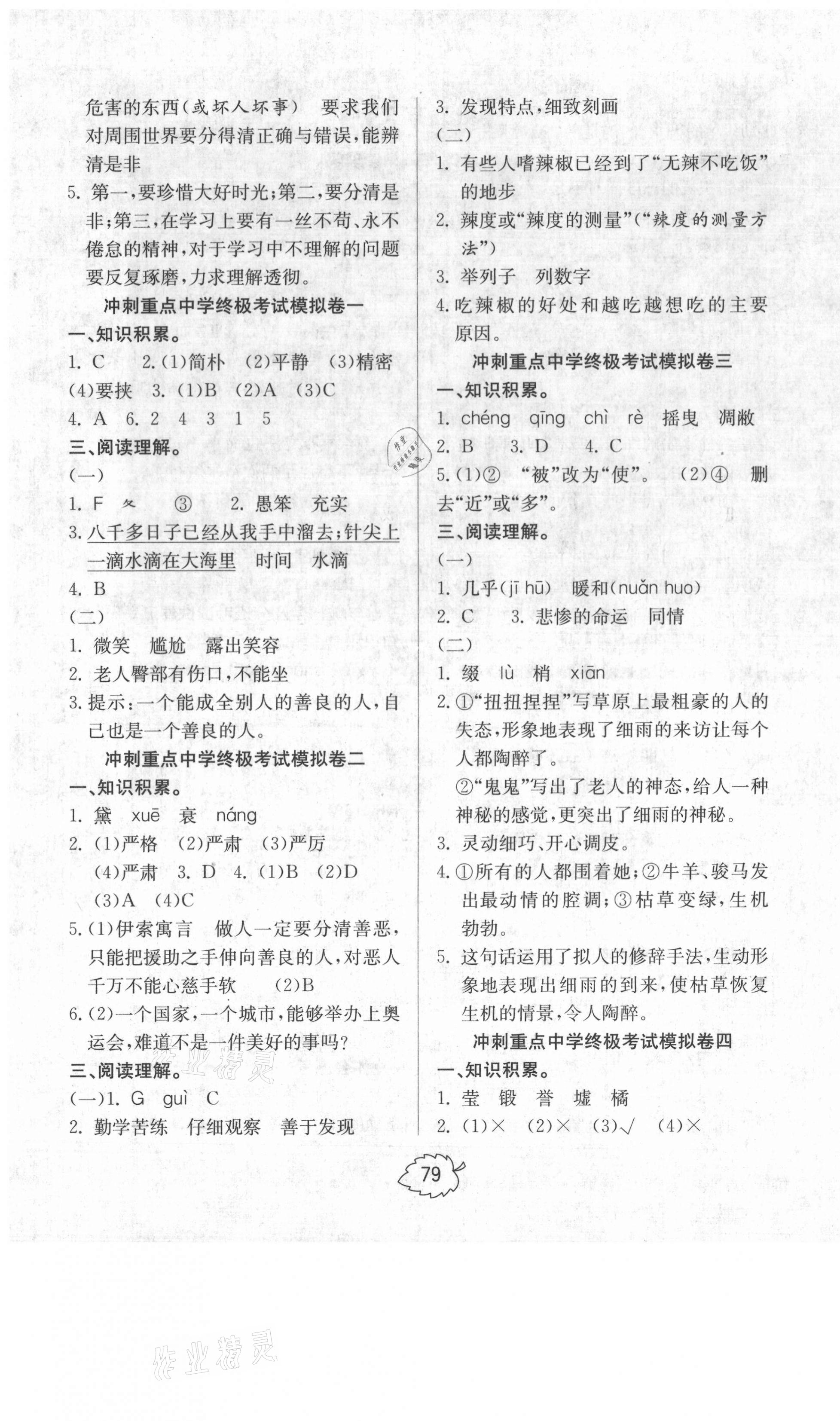 注:目前有些书本章节名称可能整理的还不是很完善,但都是按照顺序排列的,请同学们按照顺序仔细查找。练习册 2021年名师特攻小学毕业升学全真模拟试卷六年级语文人教版 答案主要是用来给同学们做完题方便对答案用的,请勿直接抄袭。