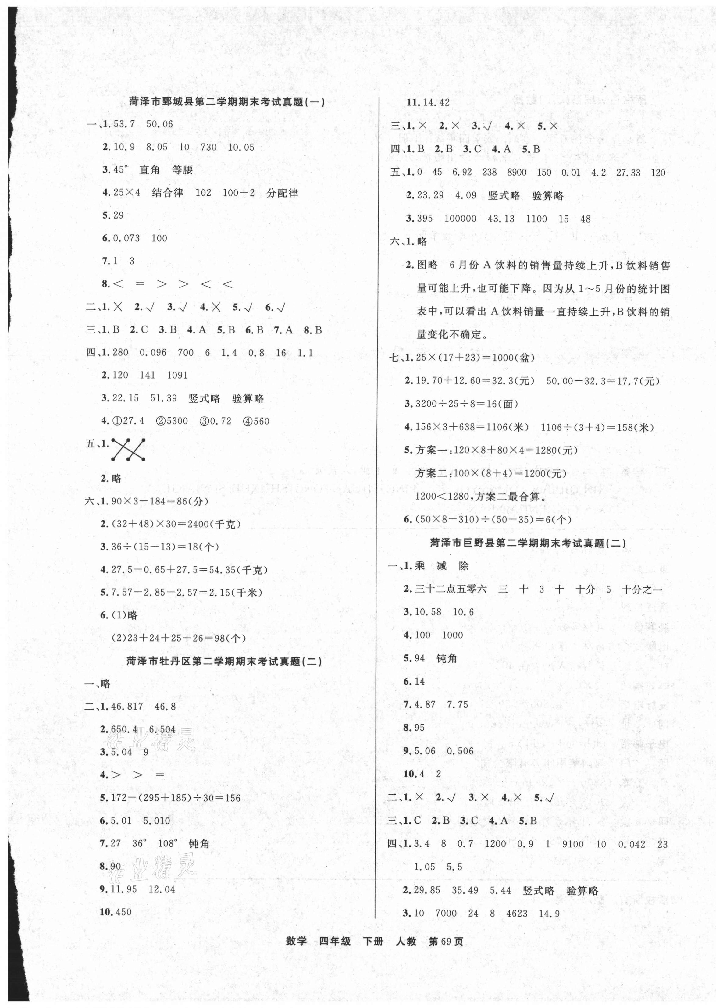 注:目前有些书本章节名称可能整理的还不是很完善,但都是按照顺序排列的,请同学们按照顺序仔细查找。练习册 2021年期末真题好卷四年级数学下册人教版 答案主要是用来给同学们做完题方便对答案用的,请勿直接抄袭。