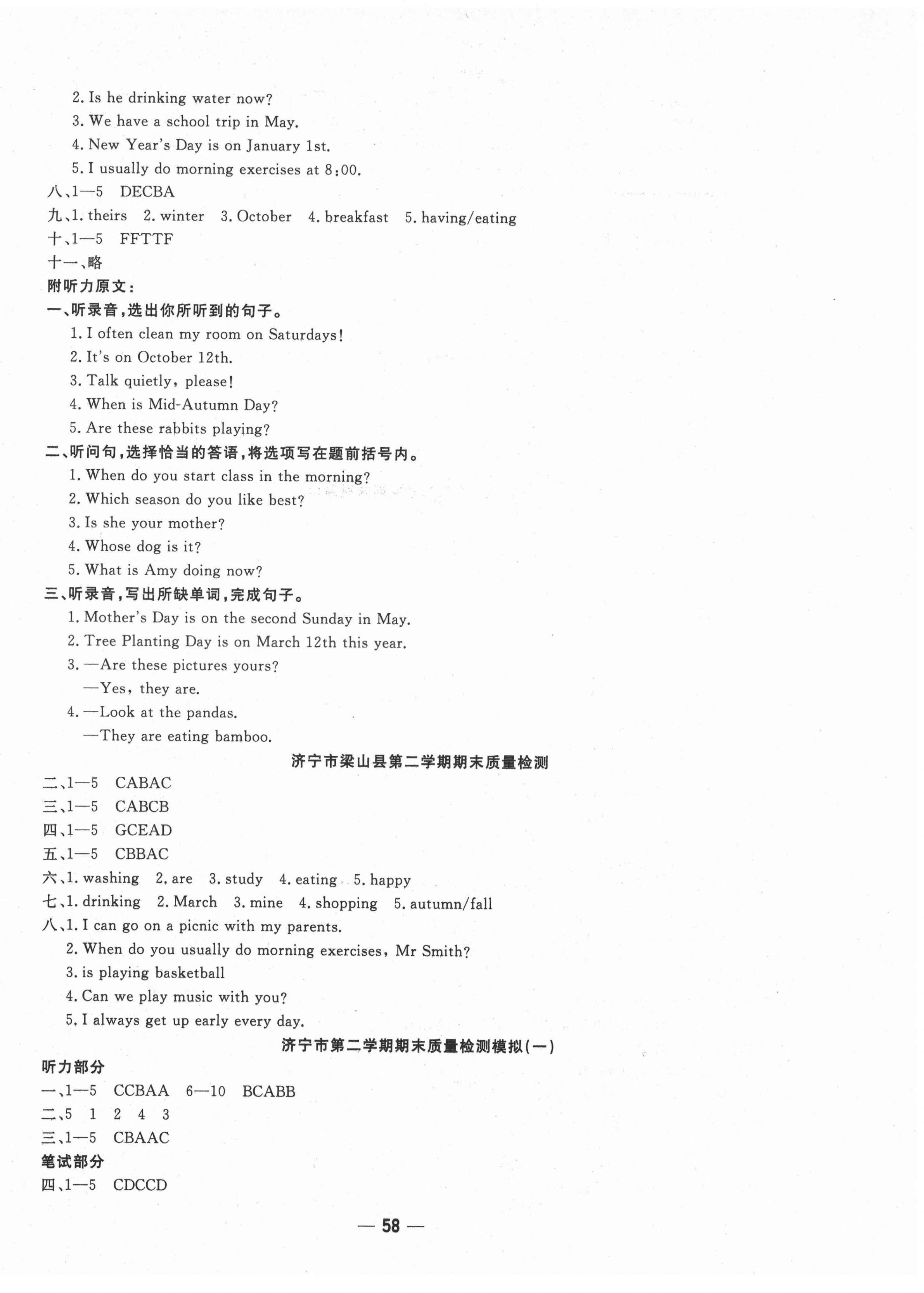 注:目前有些书本章节名称可能整理的还不是很完善,但都是按照顺序排列的,请同学们按照顺序仔细查找。练习册 2021年学海金卷期末大赢家五年级英语下册人教版济宁专版 答案主要是用来给同学们做完题方便对答案用的,请勿直接抄袭。