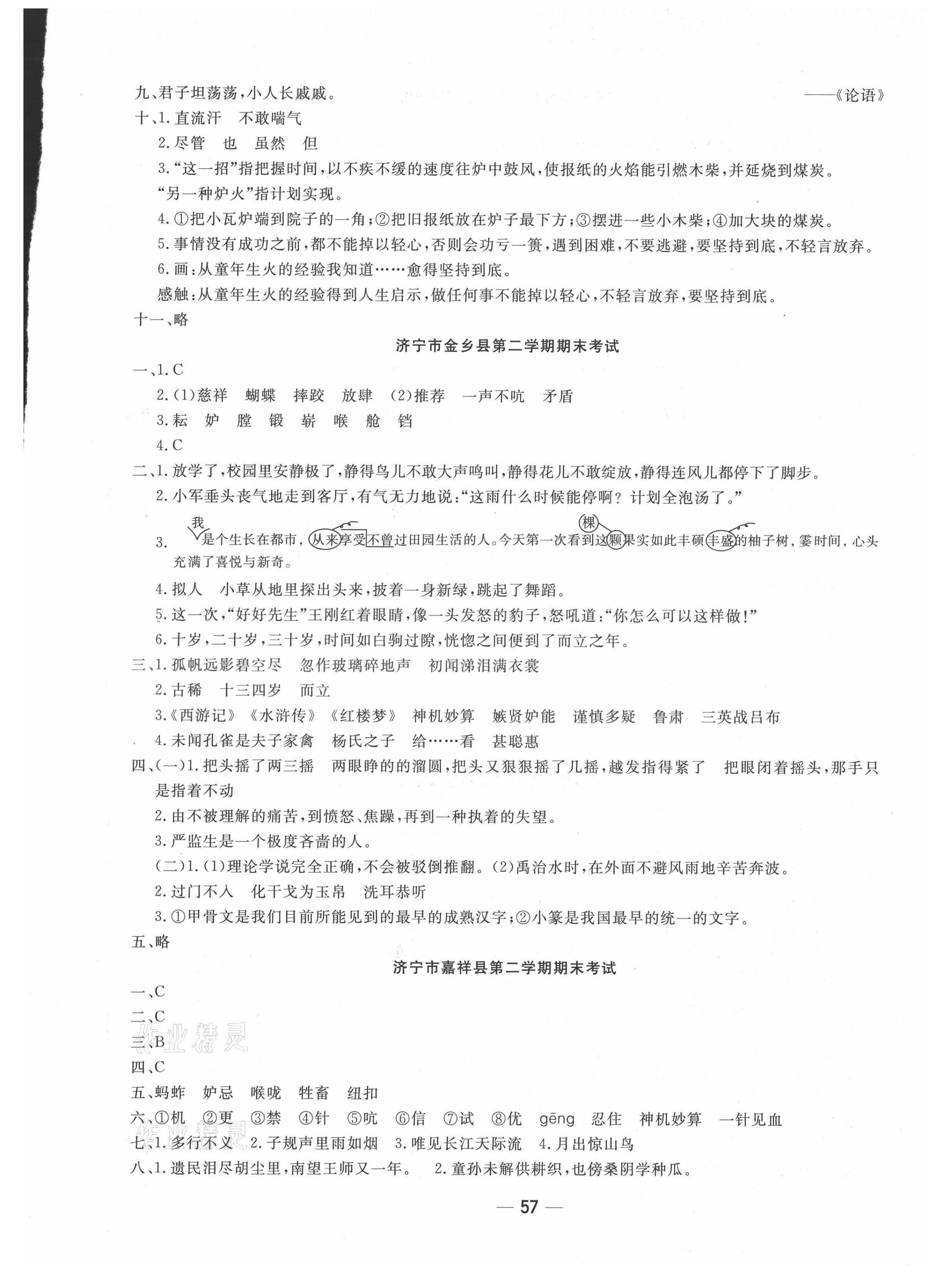 注:目前有些书本章节名称可能整理的还不是很完善,但都是按照顺序排列的,请同学们按照顺序仔细查找。练习册 2021年学海金卷期末大赢家五年级语文下册人教版济宁专版 答案主要是用来给同学们做完题方便对答案用的,请勿直接抄袭。