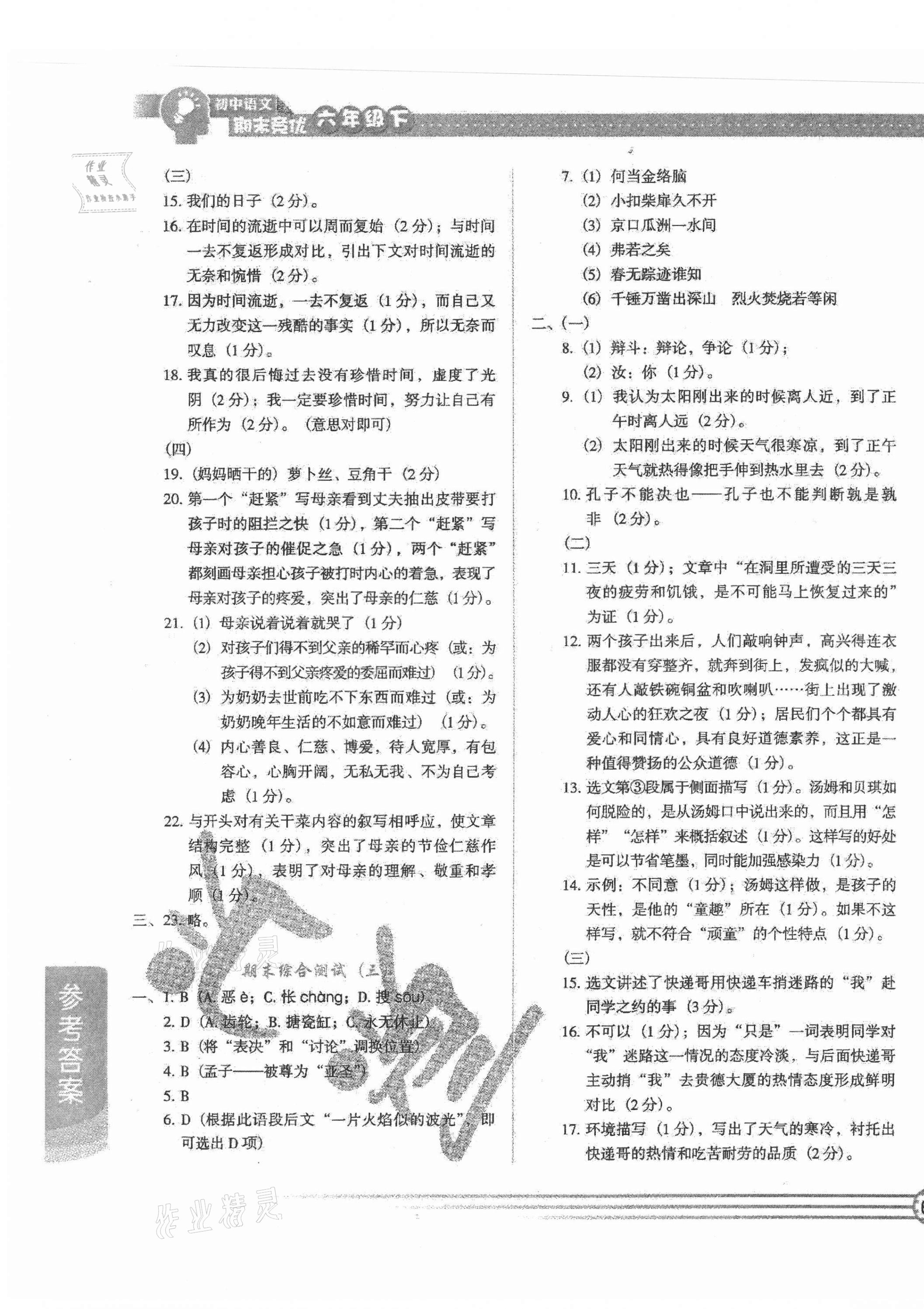 注:目前有些书本章节名称可能整理的还不是很完善,但都是按照顺序排列的,请同学们按照顺序仔细查找。练习册 2021年汇测期末竞优六年级语文下册人教版54制 答案主要是用来给同学们做完题方便对答案用的,请勿直接抄袭。