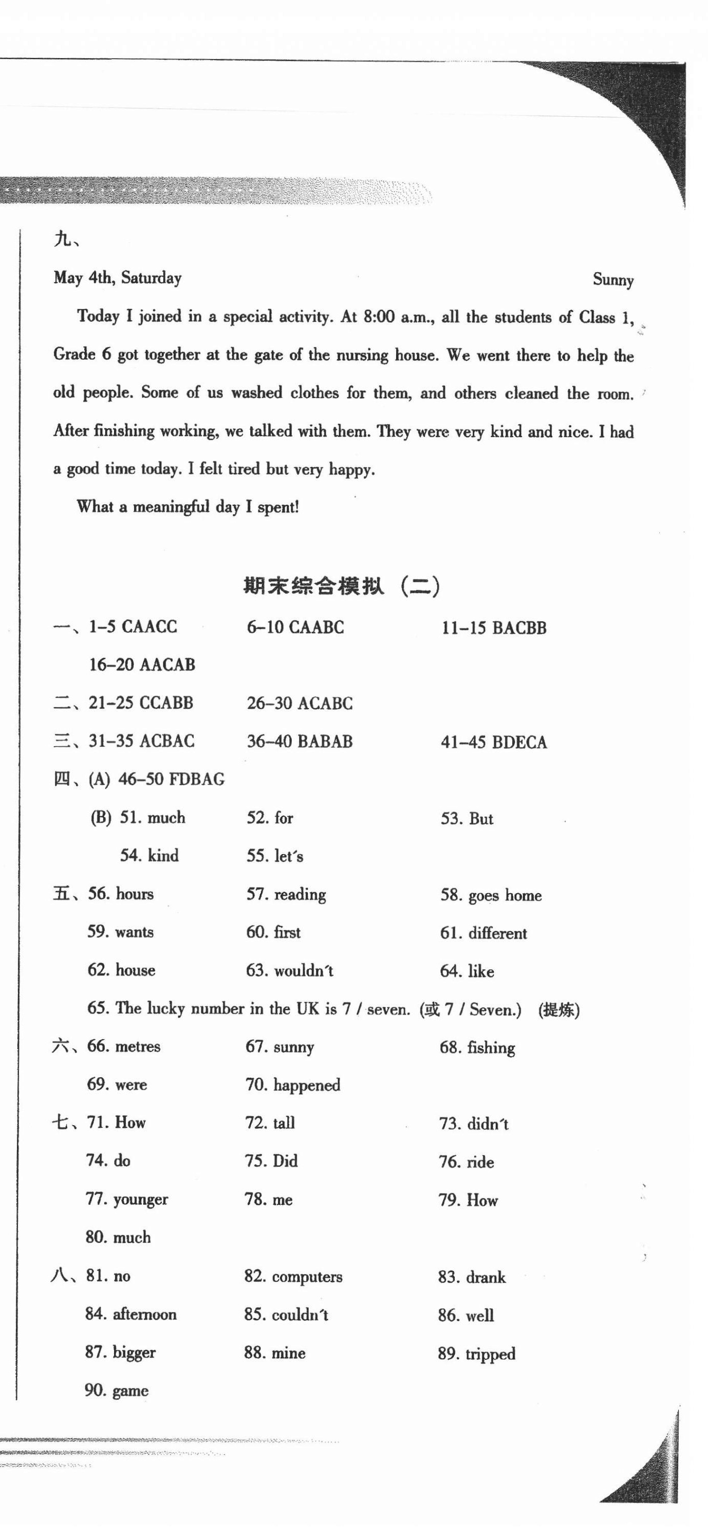 注:目前有些书本章节名称可能整理的还不是很完善,但都是按照顺序排列的,请同学们按照顺序仔细查找。练习册 2021年汇测期末竞优六年级英语下册人教版五四制 答案主要是用来给同学们做完题方便对答案用的,请勿直接抄袭。
