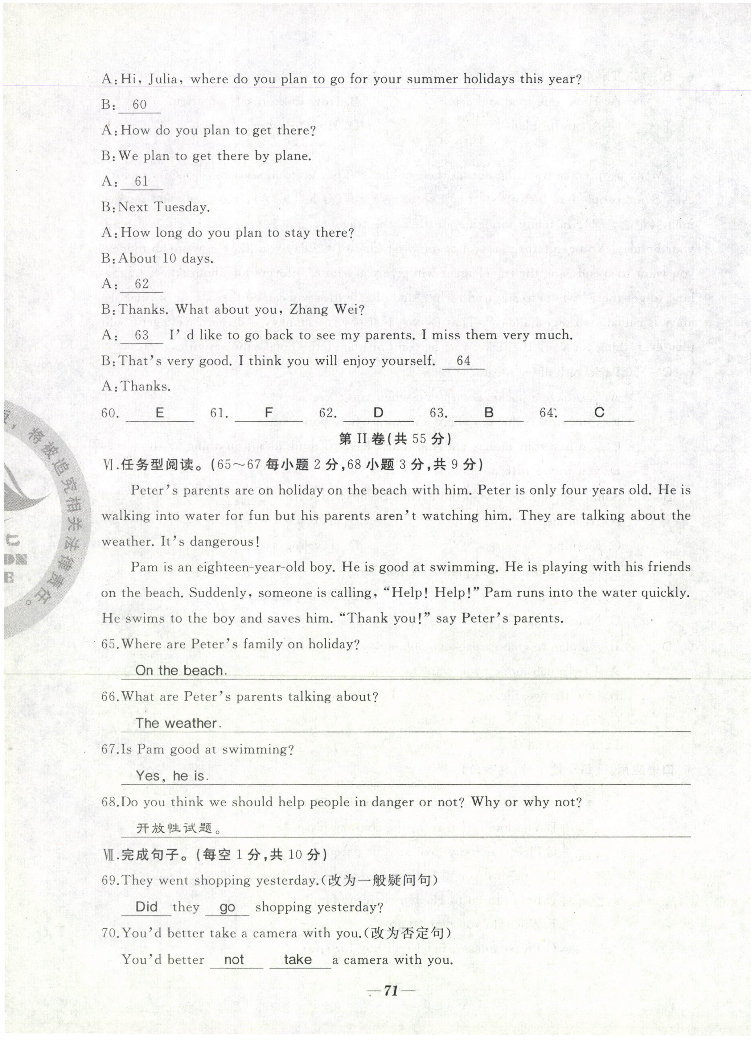 注:目前有些书本章节名称可能整理的还不是很完善,但都是按照顺序排列的,请同学们按照顺序仔细查找。练习册 2021年名校1号挑战满分七年级英语综人教版 答案主要是用来给同学们做完题方便对答案用的,请勿直接抄袭。