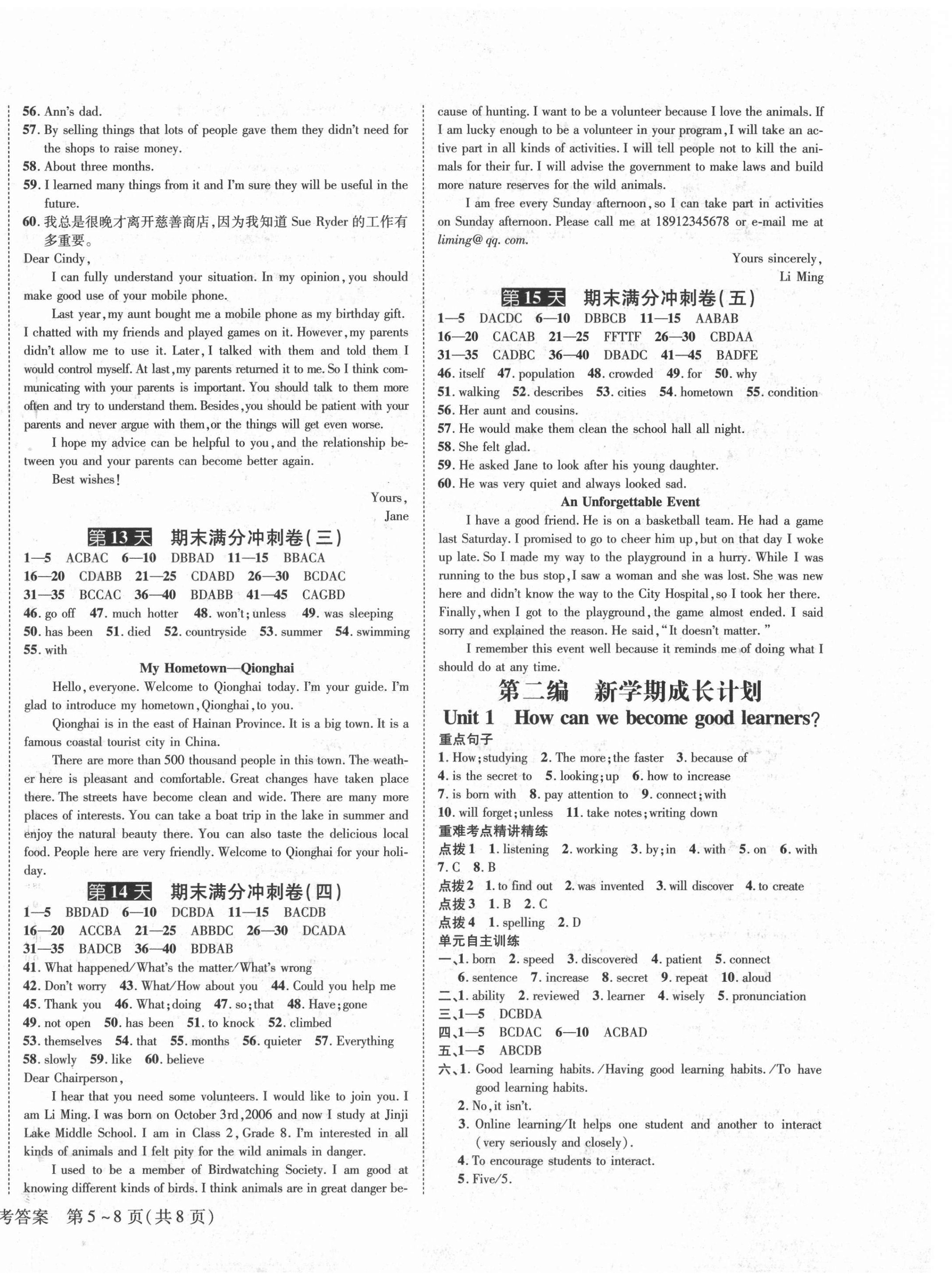 注:目前有些书本章节名称可能整理的还不是很完善,但都是按照顺序排列的,请同学们按照顺序仔细查找。练习册 2021年学期总复习长江出版八年级英语下册人教版 答案主要是用来给同学们做完题方便对答案用的,请勿直接抄袭。