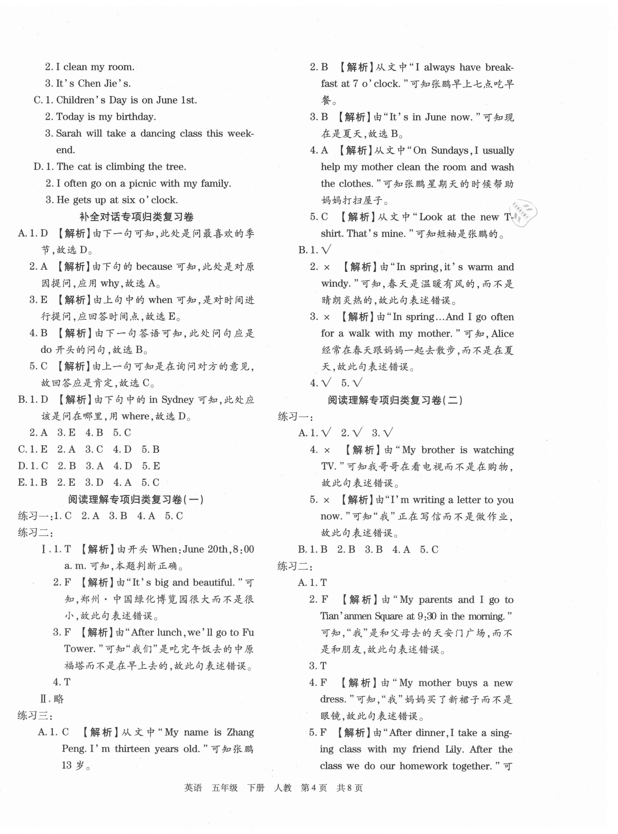 注:目前有些书本章节名称可能整理的还不是很完善,但都是按照顺序排列的,请同学们按照顺序仔细查找。练习册 2021年期末考试必刷卷五年级英语下册人教PEP版 答案主要是用来给同学们做完题方便对答案用的,请勿直接抄袭。