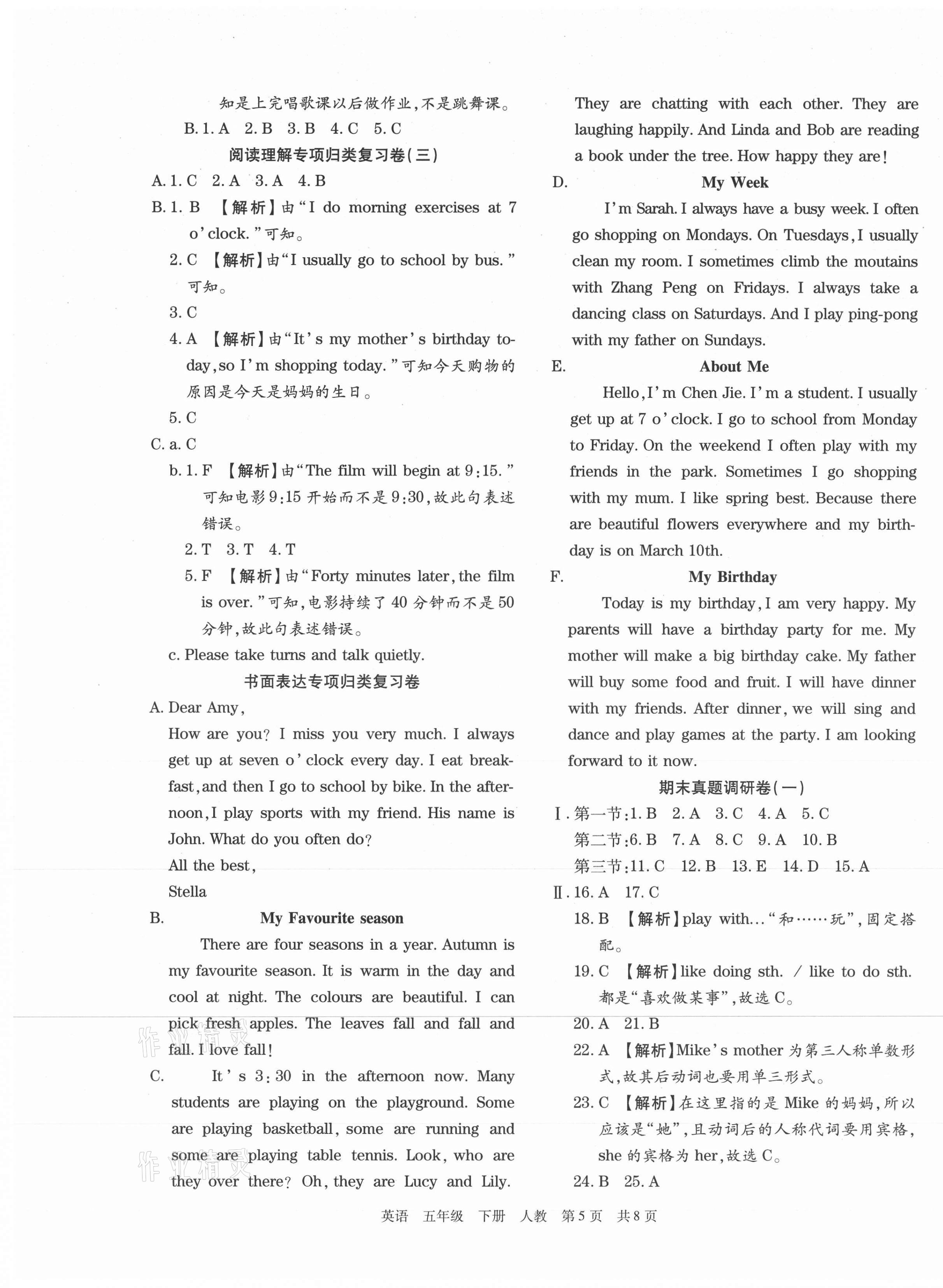 注:目前有些书本章节名称可能整理的还不是很完善,但都是按照顺序排列的,请同学们按照顺序仔细查找。练习册 2021年期末考试必刷卷五年级英语下册人教PEP版 答案主要是用来给同学们做完题方便对答案用的,请勿直接抄袭。